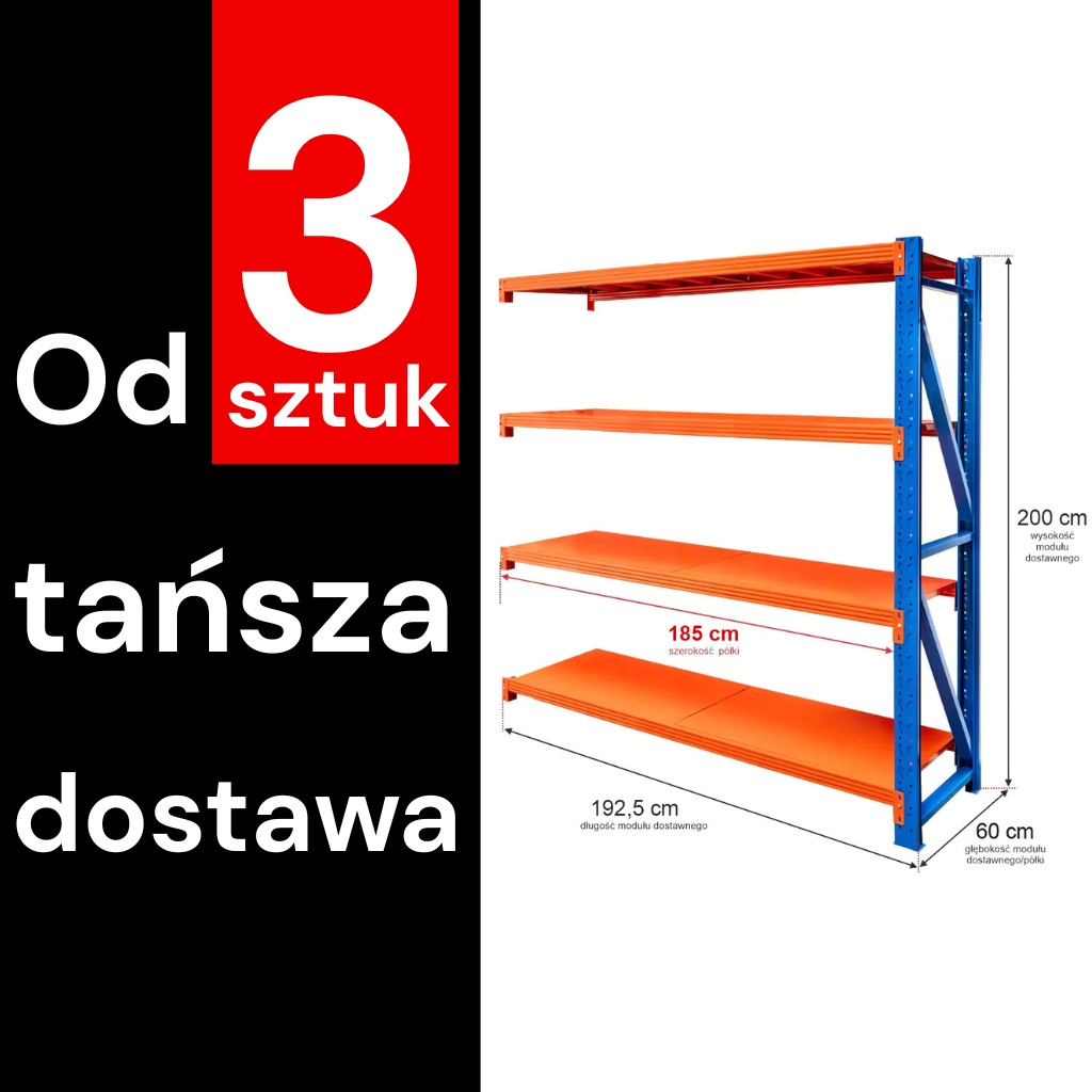 Regał magazynowy 4-półkowy Mega-M FORTIS LIGHT H-200 cm L-192,5 cm G-60 cm moduł dostawny (wysyłka paletowa) N