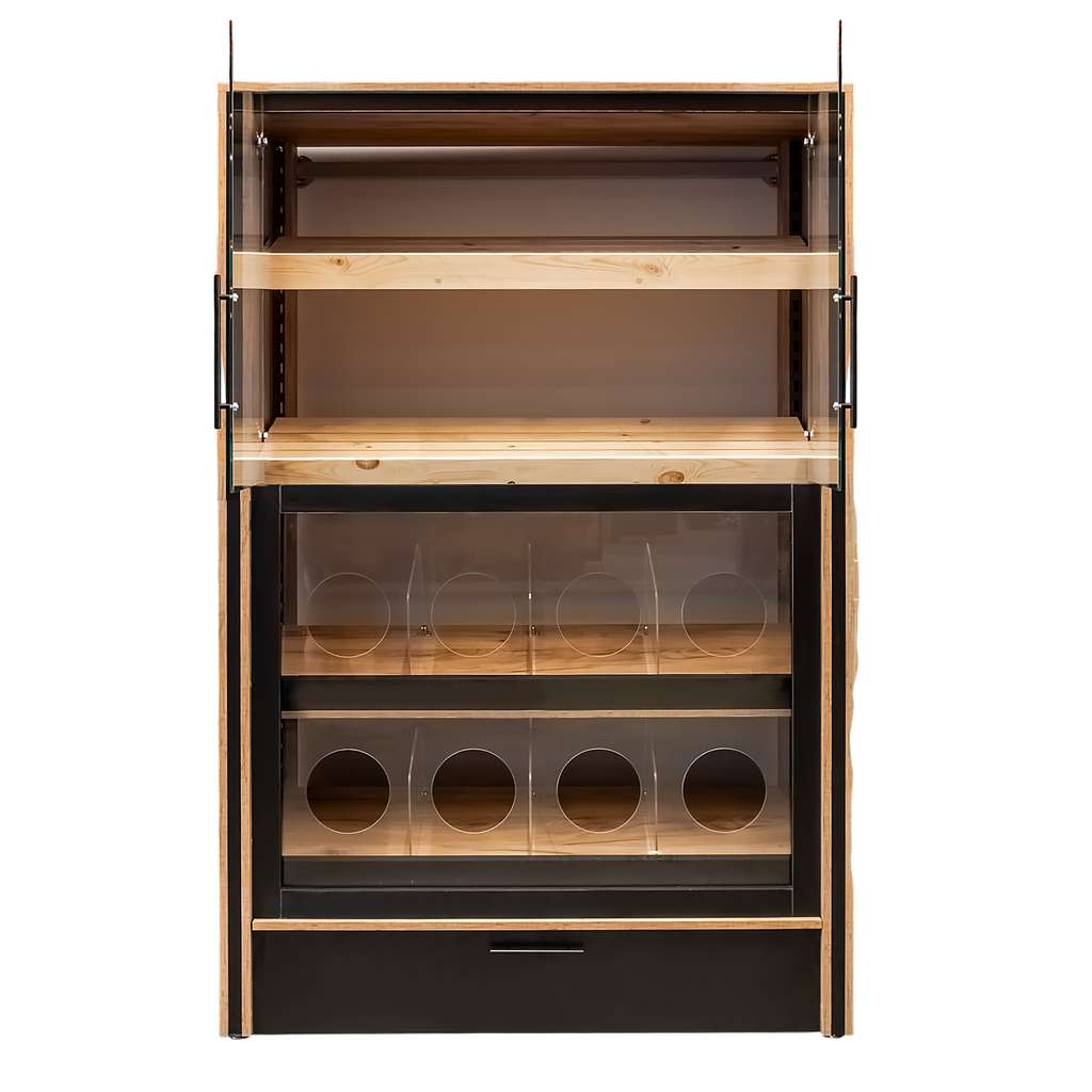 Regał na pieczywo dzielony przeszklony Mega-M H- 204 cm L- 136 cm G- 62 cm dąb kraft / czarny N