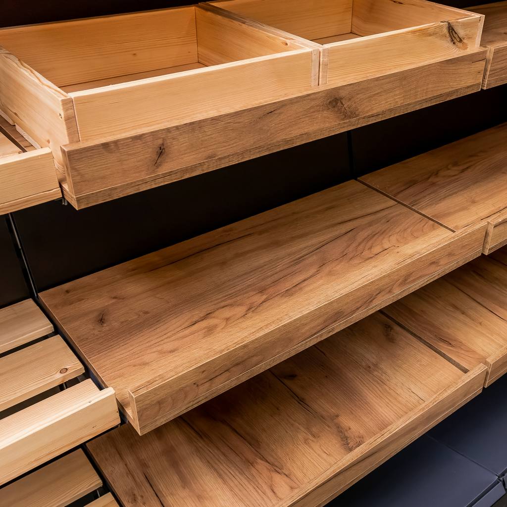 Regał piekarniczy Mega-M to wysokiej jakości mebel do ekspozycji chlebów, bułek, słodkich czy słonych przekąsek. Regał samoobsługowy wyróżnia się niezwykłą elegancją, funkcjonalnością i solidnym wykonaniem z płyty laminowanej 18 mm. Wyposażony w pochylne półki, które umożliwiają klientom komfortowe wyciąganie pieczywa. Mebel piekarniczy Mega-M został zaprojektowany z myślą o codziennym użytkowaniu. Do efektywnej prezentacji bułek, chleba i wyrobów cukierniczych na regałach można dokupić drewniane skrzynki.