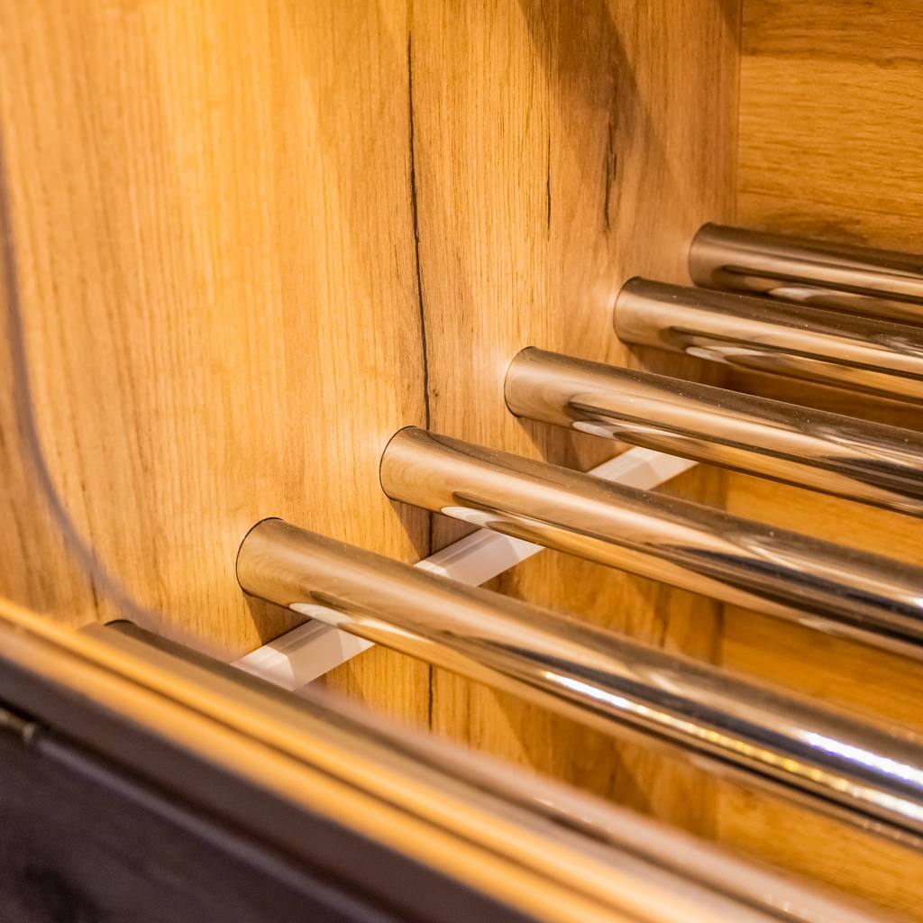 - Głębokie półki w formie chromowanych rurek pomieszczą dużą ilość pieczywa.