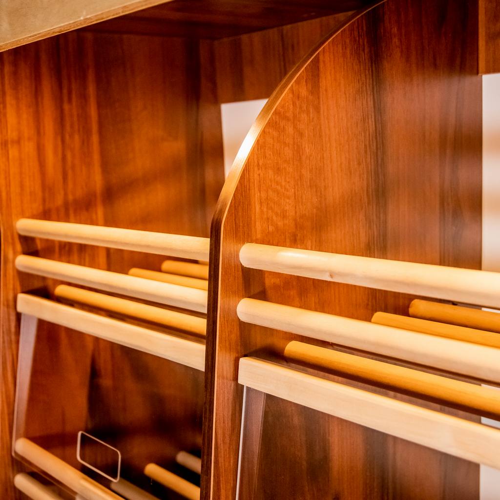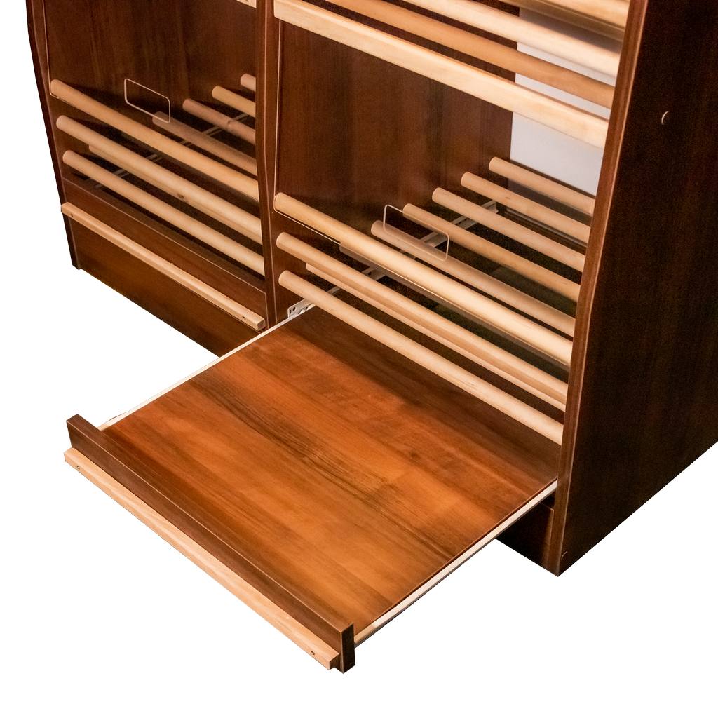 Regały piekarnicze są doskonałą formą prezentacji pieczywa i zapewniają łatwy dostęp do produktu. Wyposażenie w oświetlenie LED podkreśla walory oferowanego pieczywa. Półki z plexi ustawione pod kątem gwarantują, że towar będzie idealnie wyeksponowany a pieczywo zachowa świeżość na dłużej. Wysuwana szuflada na okruchy zapewnia łatwość utrzymania czystości. Solidne wykonanie z naturalnego drewna sprawia, że regały idealnie sprawdzą się zarówno w małych jak i średnich placówkach handlowych.
