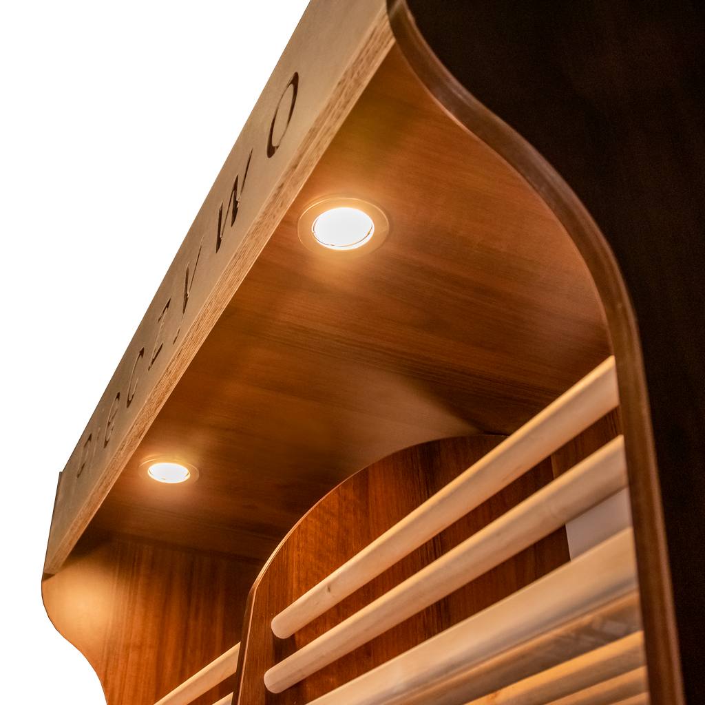 Regał na pieczywo H-200 cm L-100 cm G-50 cm plexi oświetlenie LED orzech ecco