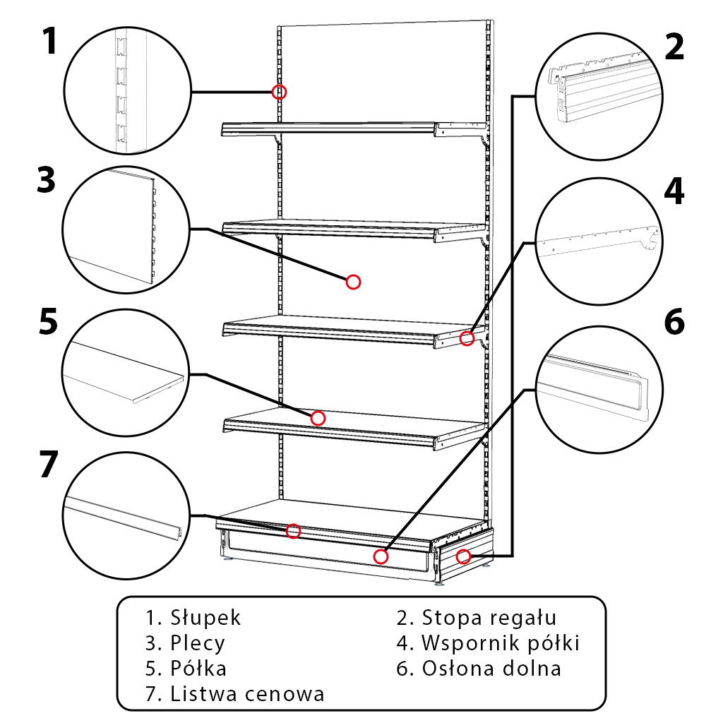 Dostępne dodatkowe elementy do regału sklepowego Merkury: