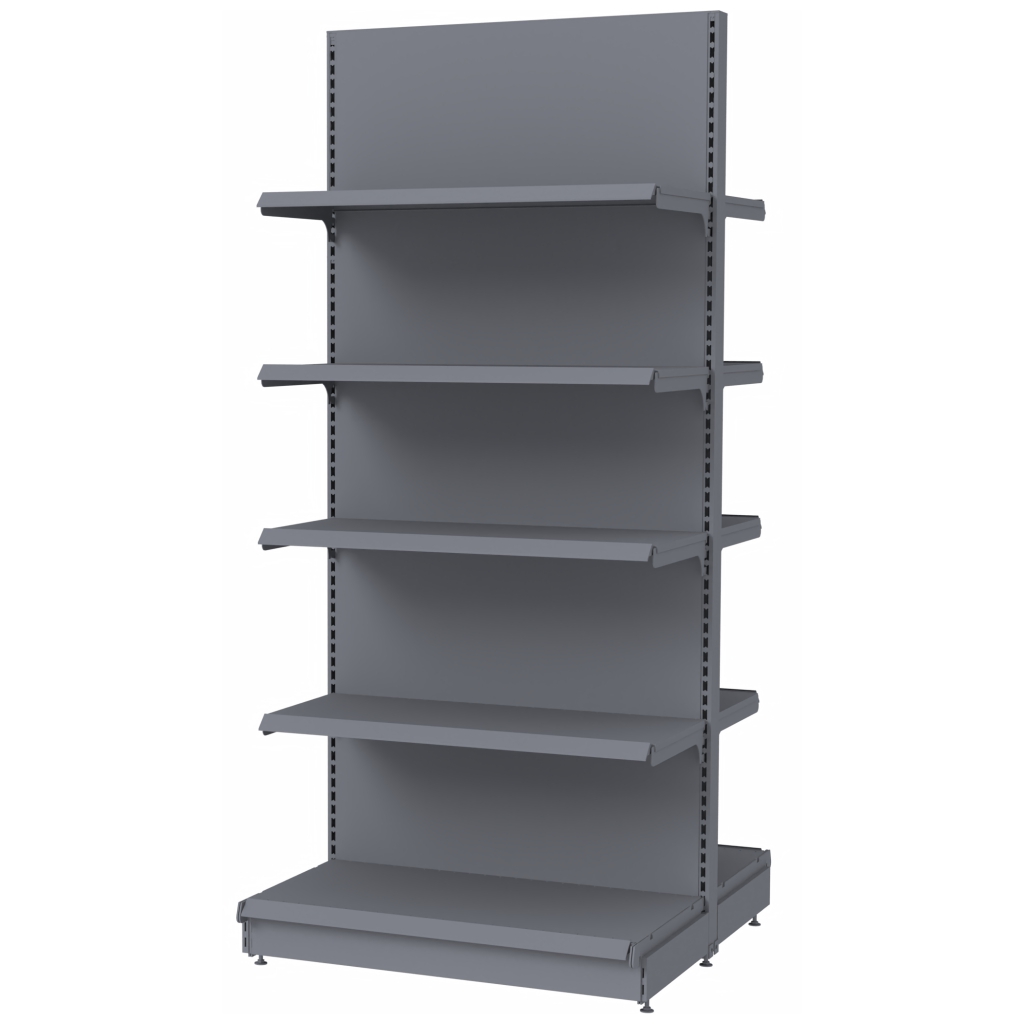 Regał sklepowy Mega-M Merkury dwustronny H-210 cm L-100 cm G-2×47/8×37 cm (GC-102 cm) grafit moduł bazowy N