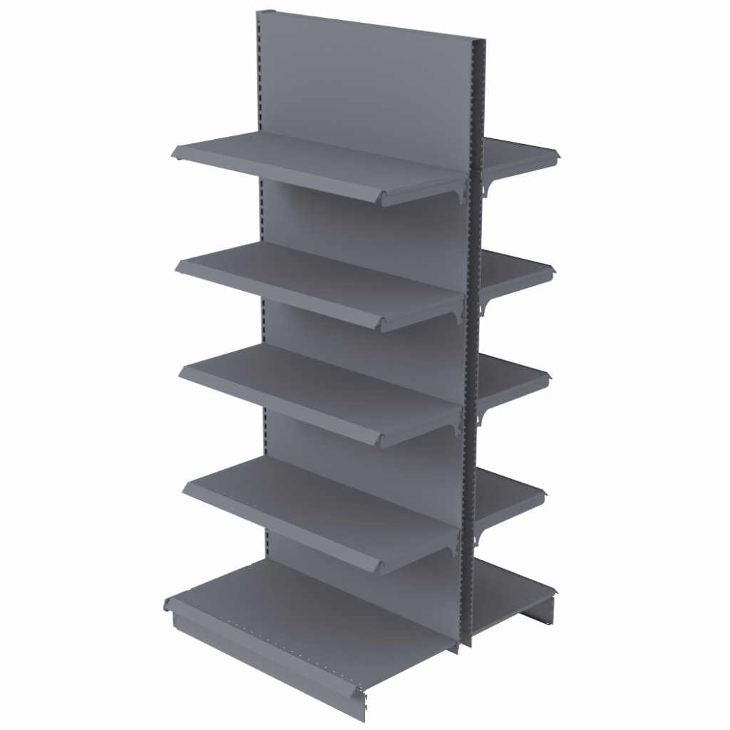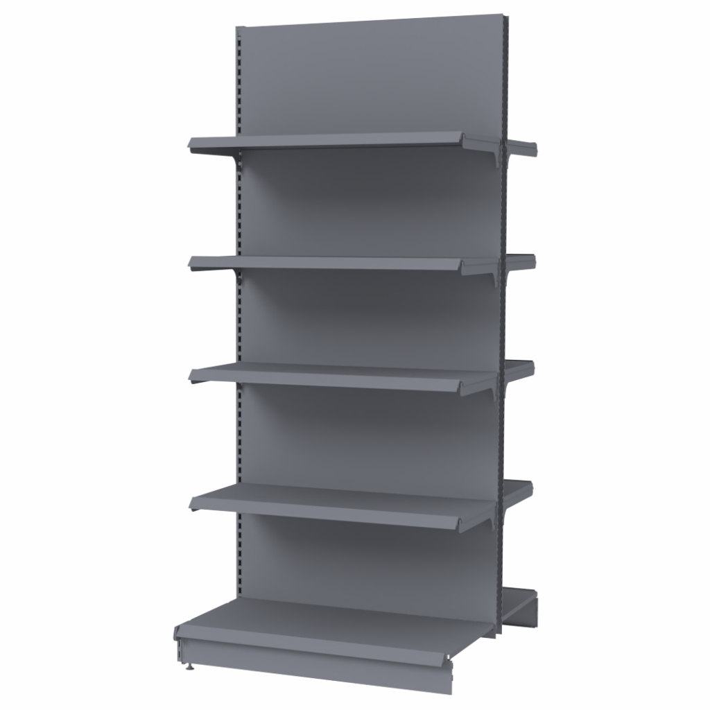 Regał sklepowy Mega-M Merkury dwustronny H-210 cm L-100 cm G-2×47/8×37 cm (GC-102 cm) grafit moduł dostawny N