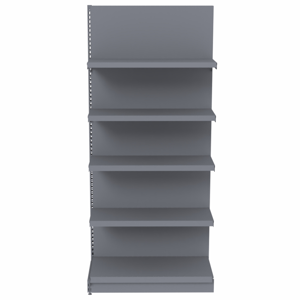Połączenie modułu bazowego z dostępnym modułem dostawnym daje możliwość zbudowania ciągu regałowego dowolnej długości. Maksymalne obciążenie na półkę do 120 kg przy równomiernie rozłożonym obciążeniu. Regał można łatwo i szybko dostosować do prezentowanego towaru. Na poziomie półki bazowej zazwyczaj składowane są towary o największych gabarytach. W środkowej części regału znajdą się produkty najczęściej kupowane, które będą w zasięgu ręki. Zmiana tyłów pełnych na perforowane (euro), pozwala na zastosowanie różnych wieszaków oraz haczyków. Dzięki którym w dowolny sposób można wyeksponować towar.