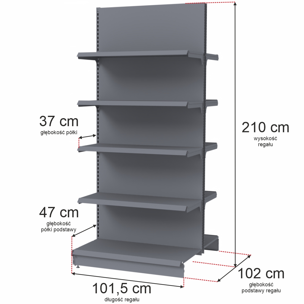 Regał sklepowy dwustronny Mega-M wysokość 210 cm szerokość 101.5 cm moduł dostawny