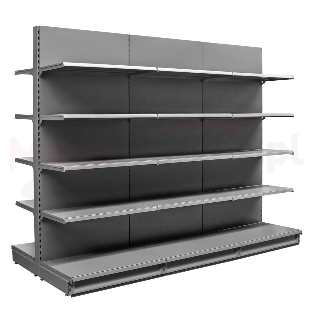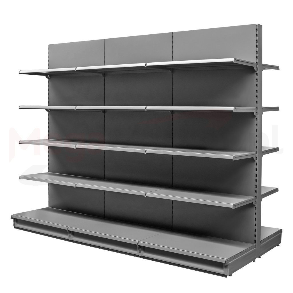 Regał sklepowy Mega-M Merkury dwustronny H-210 cm L-300 cm G-2×47/8×37 cm (GC-102 cm) grafit zestaw N