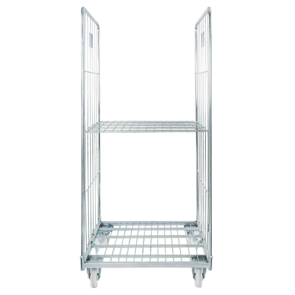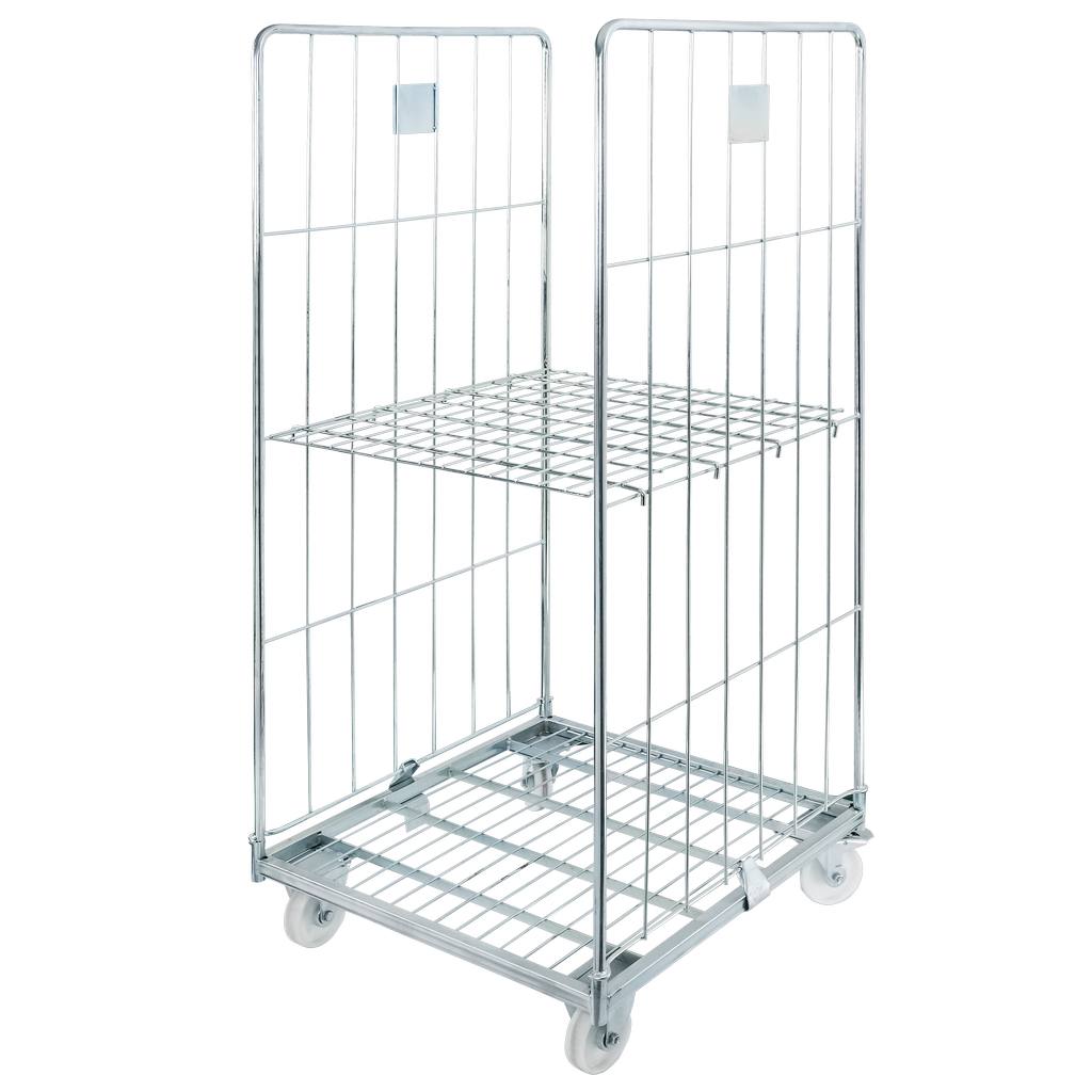 Wózek transportowy Mega-M Universal służy do przewożenia towarów i paczek o dużych gabarytach. Umożliwia transport i magazynowanie ciężkich ładunków do 500 kg. Wózek siatkowy wykonany jest z drutu stalowego pokrytego powłoką cynkową, posiadającą właściwości antykorozyjne, dzięki czemu z powodzeniem nadaje się do pracy na zewnątrz. Rollcage wyposażony jest w dwie ściany boczne, jedną półkę, dwa kółka stałe i dwa skrętne z hamulcem ułatwiające manewrowanie wózkiem przy pełnym załadunku.