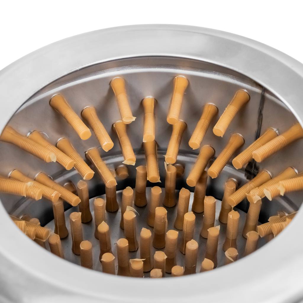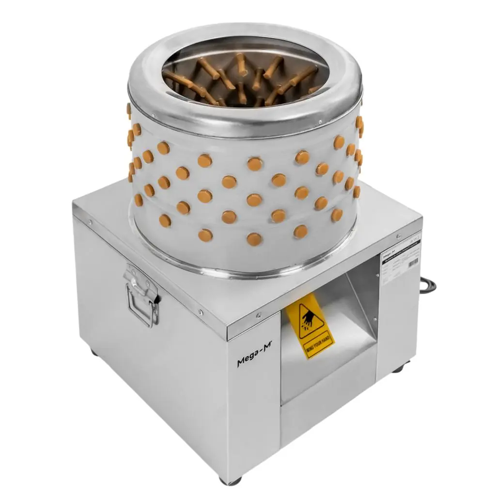 Skubarka elektryczna Mega-M CH 3-4G/P to profesjonalne urządzenie przeznaczone do szybkiego i dokładnego usuwania piór z mniejszego drobiu, takiego jak przepiórki, gołębie oraz inne niewielkie ptactwo. Wykonana z wysokiej jakości stali nierdzewnej, zapewnia trwałość, odporność na korozję oraz łatwe utrzymanie czystości. Dzięki innowacyjnej sekwencji silikonowych palców urządzenie osiąga wydajność skubania na poziomie 98%, co przekłada się na precyzję i minimalizację strat surowca. Konstrukcja urządzenia została wykonana ze stali nierdzewnej, która zapewnia trwałość, odporność na korozję oraz łatwość w utrzymaniu higieny.