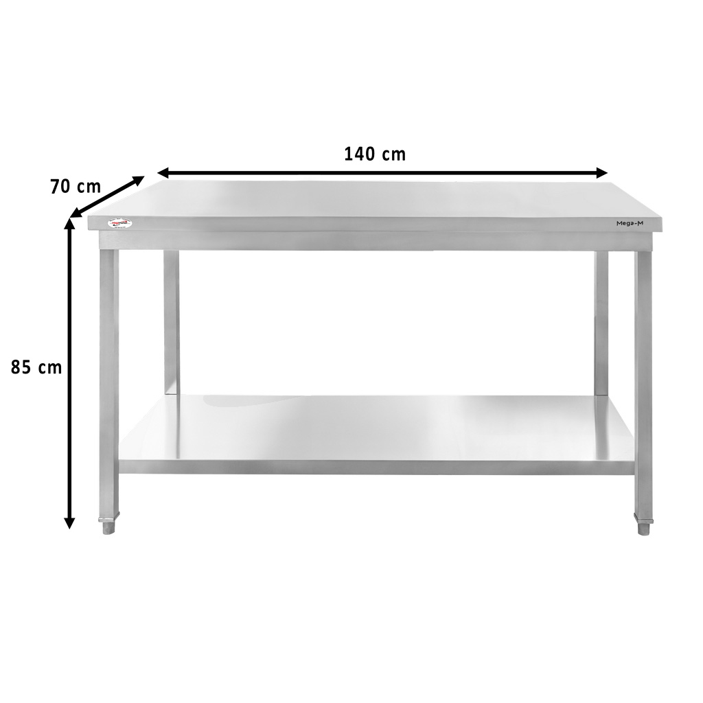 Stół gastronomiczny roboczy wzmocniony z półką Mega-M 140x70x85(H) stal nierdzewna