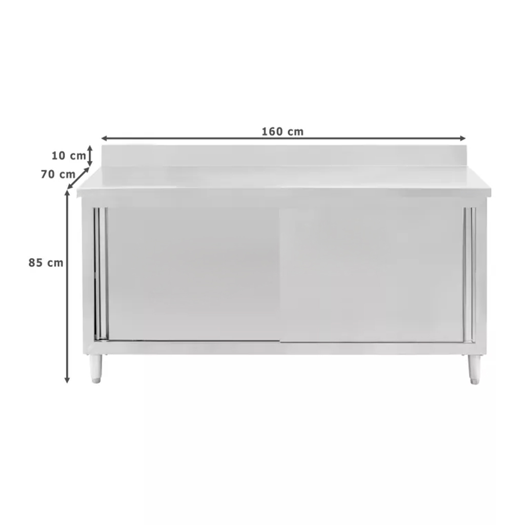 Stół gastronomiczny roboczy z szafką i rantem Mega-M 160x70x85(H) MM-C101816 stal nierdzewna