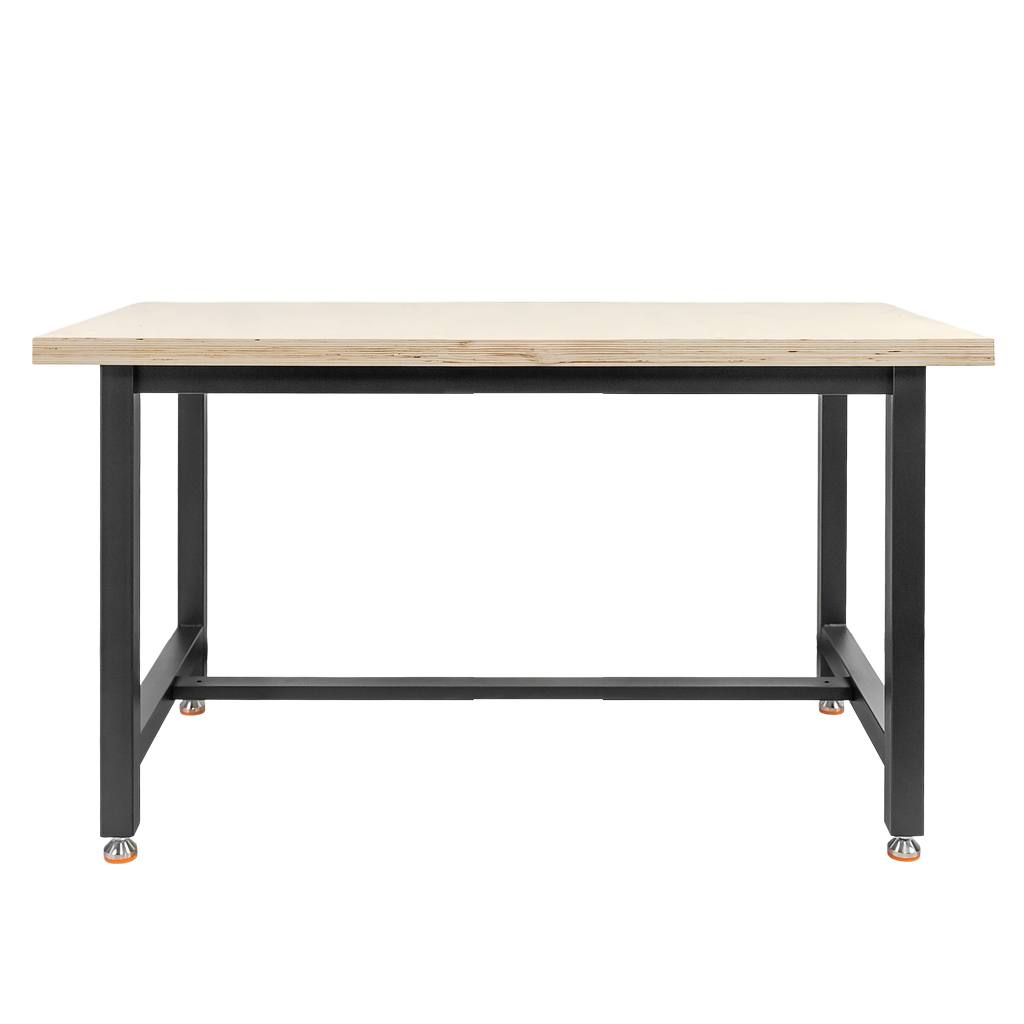 Stół warsztatowy Mega-M 150x75x80 cm to idealne rozwiązanie dla profesjonalnych warsztatów, garaży, pracowni technicznych i miejsc produkcji, gdzie liczy się solidność i wygoda pracy. Konstrukcja oparta na stalowej ramie o grubości 1,2 mm zapewnia stabilność oraz odporność na codzienne, intensywne użytkowanie. Szeroki blat roboczy z trwałym rdzeniem z płyty wiórowej i pokryciem ze sklejki gwarantuje dużą przestrzeń do realizacji nawet najbardziej wymagających zadań.