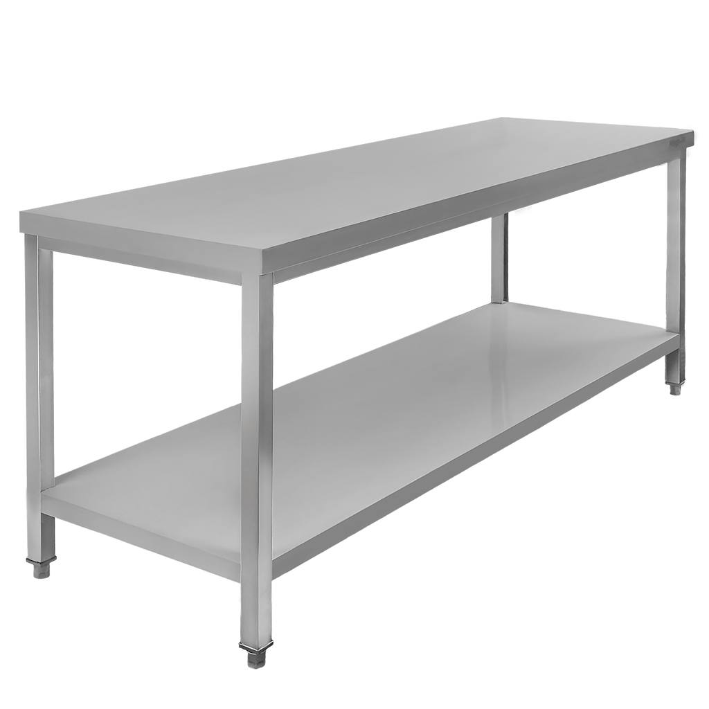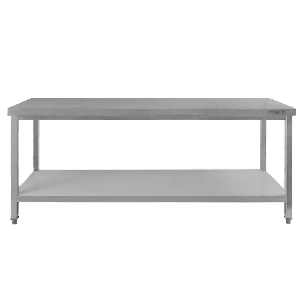 Stół ze stali nierdzewnej centralny z półką Mega-M – rozmiar 200x70x85 cm