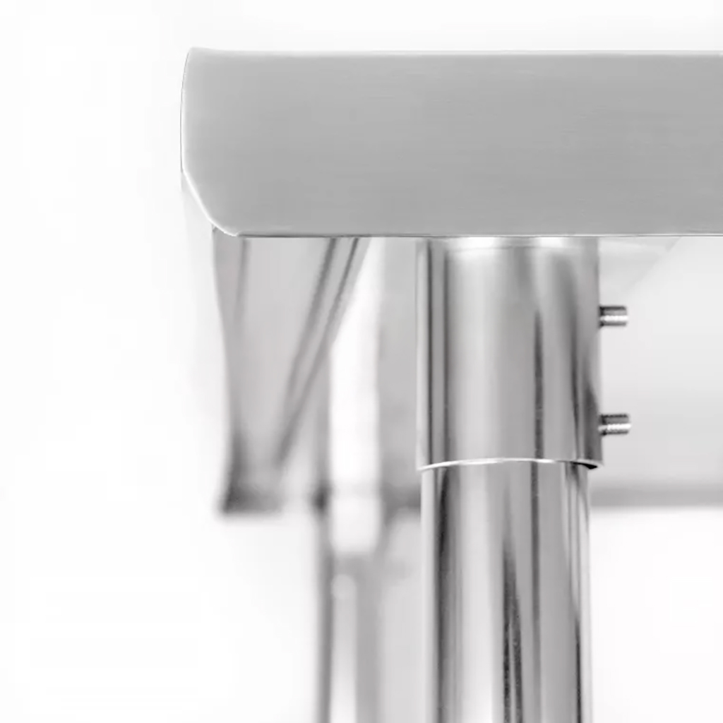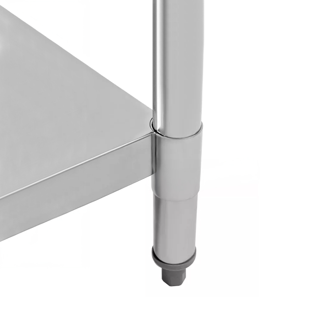 Stół roboczy 2-poziomowy jest wykonany z wysokiej jakości stali nierdzewnej odpornej na intensywną pracę w wymagających warunkach kuchennych oraz na korozję. Zaletą tego stołu jest dwupoziomowa konstrukcja pozwalająca na umieszczenie w dolnej części stołu naczyń potrzebnych do pracy. Dzięki swojej wykonalności jest bardzo łatwy w utrzymaniu czystości.