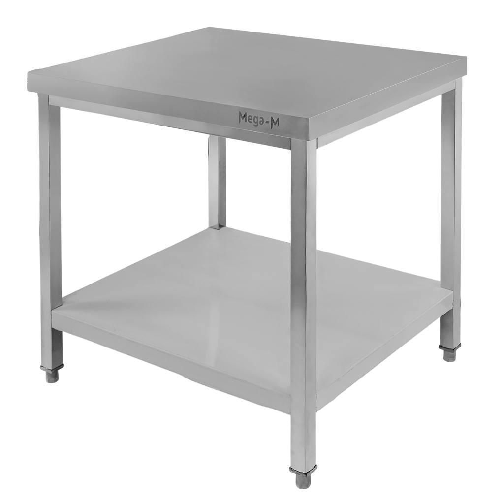 Stół ze stali nierdzewnej centralny z półką Mega-M w rozmiarze 80x60x85 cm
