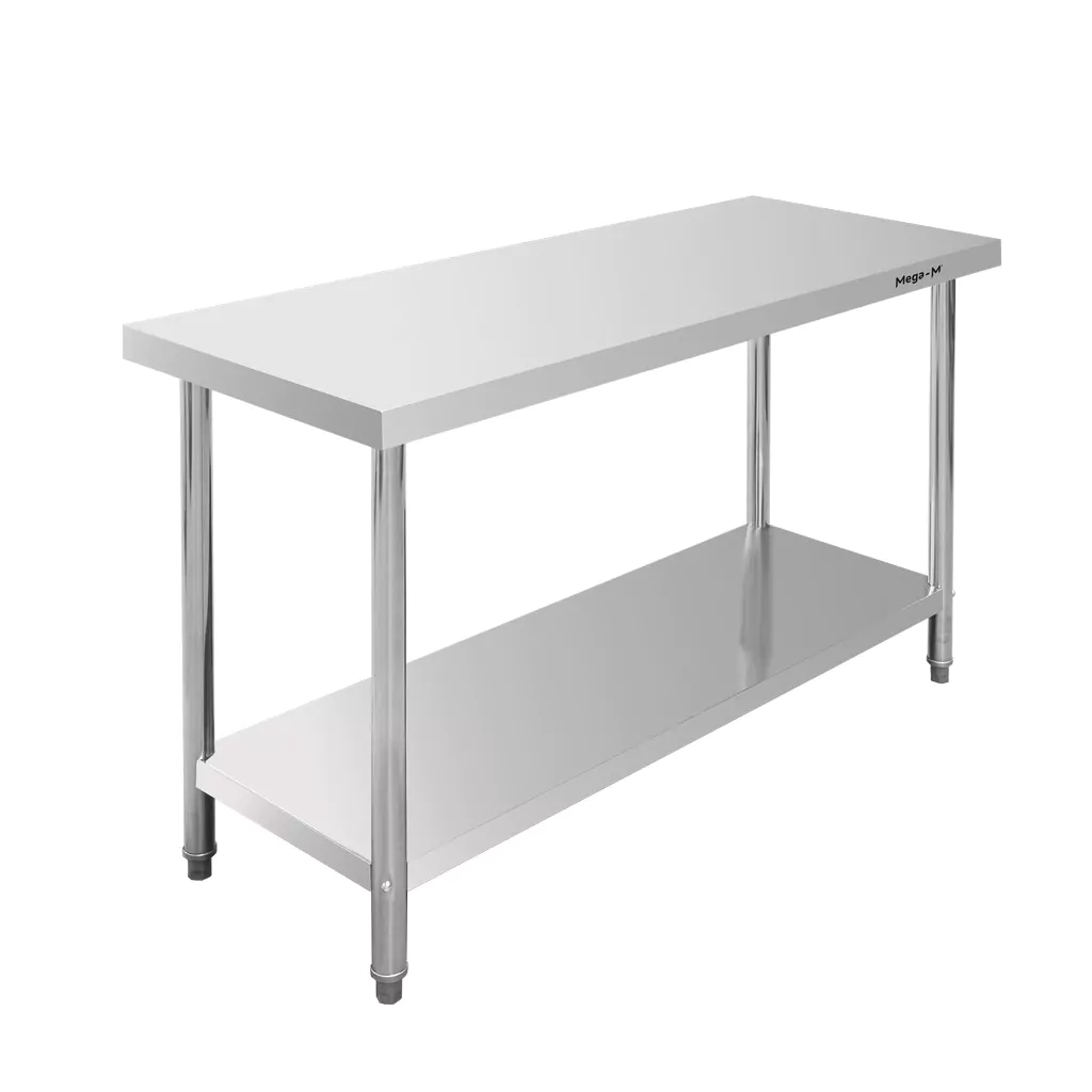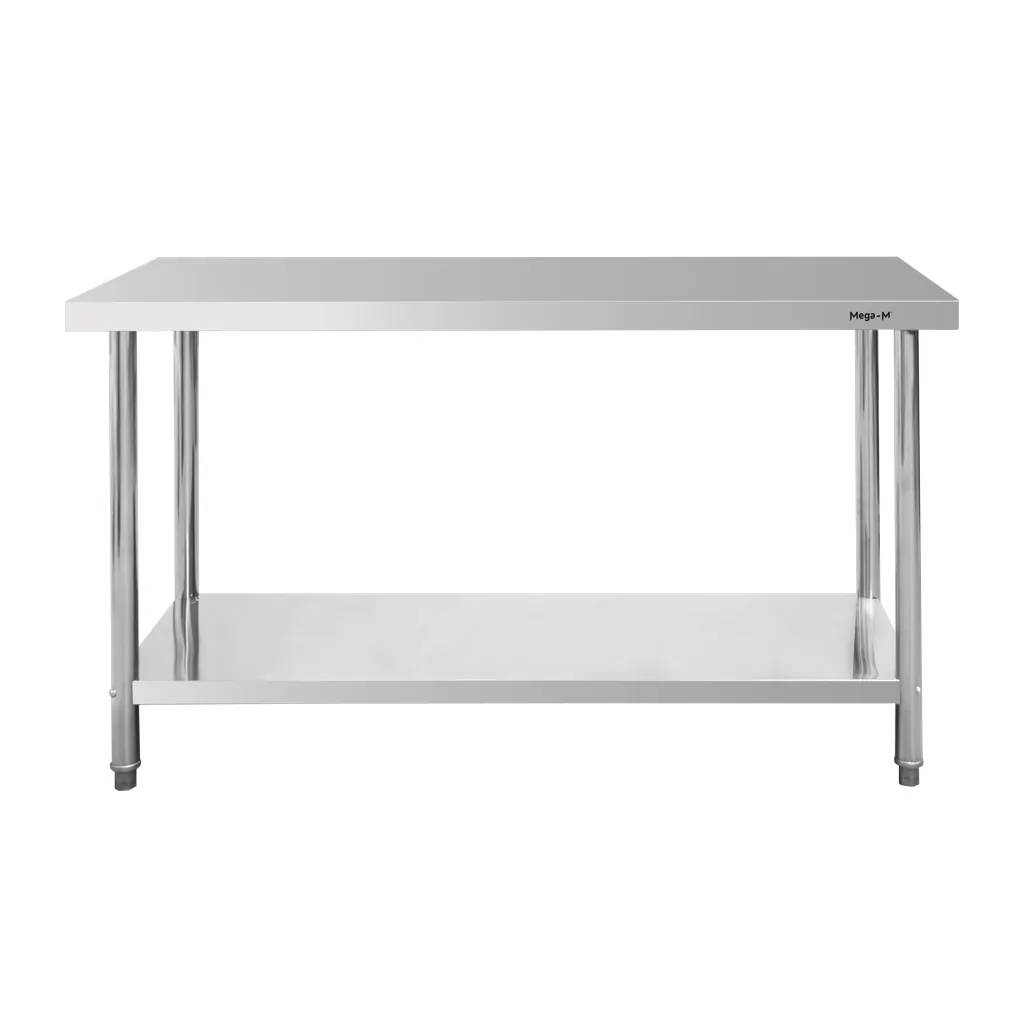Stół gastronomiczny z półką Mega-M STANDARD 140x70x85 cm to doskonały wybór dla profesjonalnych kuchni, które stawiają na niezawodność i funkcjonalność. Wykonany z wysokiej jakości stali nierdzewnej stół gwarantuje trwałość, estetykę i higienę na najwyższym poziomie. Jego centralna konstrukcja oraz przestronny blat zapewniają wygodę i efektywność podczas codziennych prac kuchennych, niezależnie od intensywności użytkowania. Stół gastronomiczny Mega-M STANDARD został wyposażony w dolną półkę, która stanowi cenną w każdej kuchni dodatkową powierzchnię przechowywania oraz regulowane nóżki, za pomocą których można zniwelować nierówności podłoża. Dzięki swojej gładkiej powierzchni mebel jest łatwy do utrzymania w czystości.