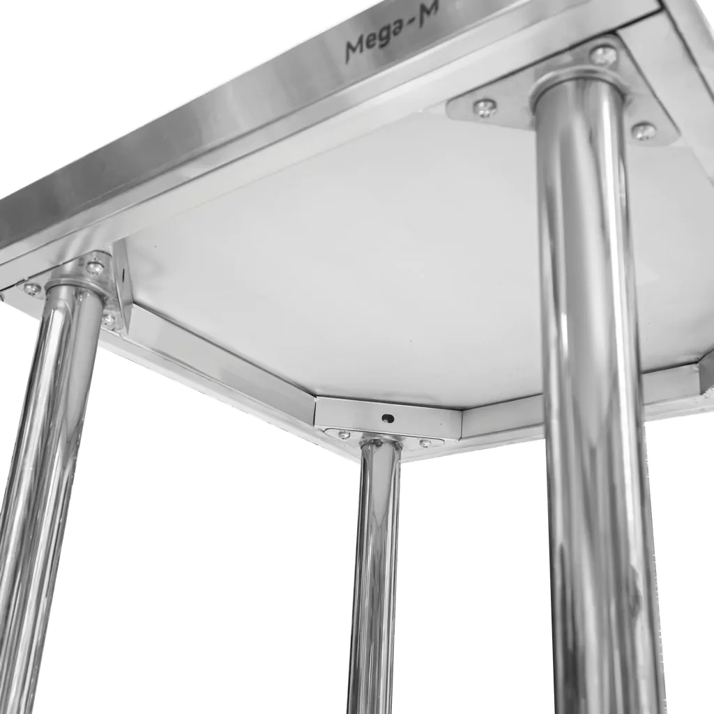 Stół ze stali nierdzewnej centralny z półką Mega-M STANDARD S-60 cm G-60 cm H-85 cm N