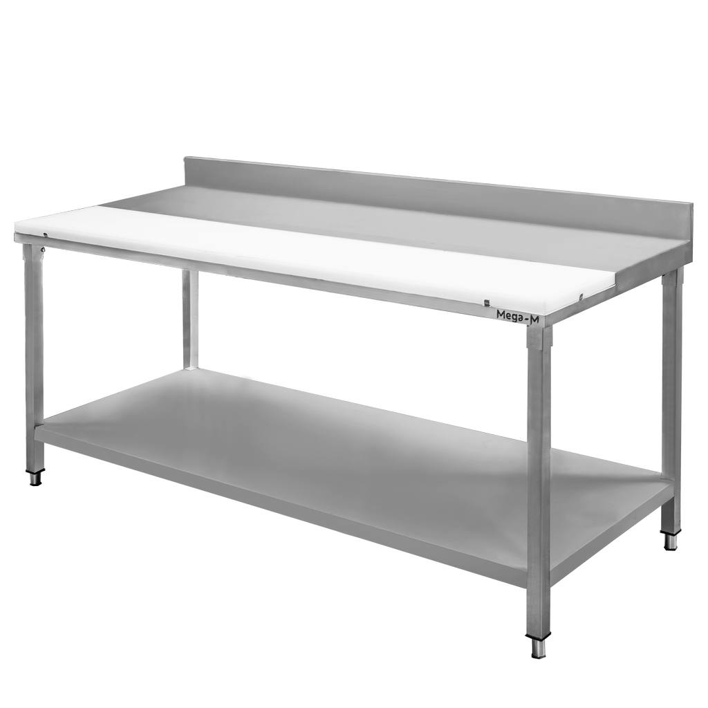 Stół ze stali nierdzewnej przyścienny z płytą polietylenową,i półką Mega-M S-180 cm G-70 cm H-85 cm N