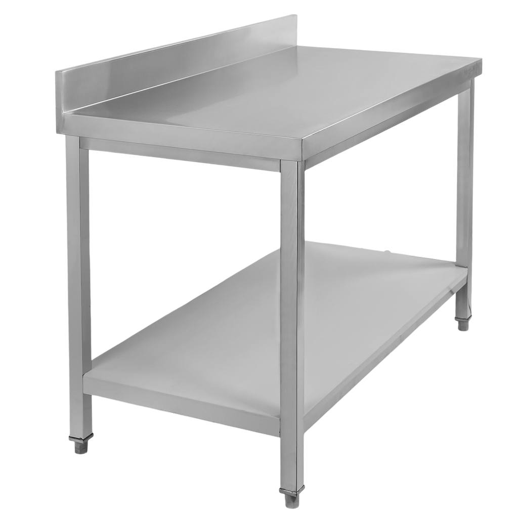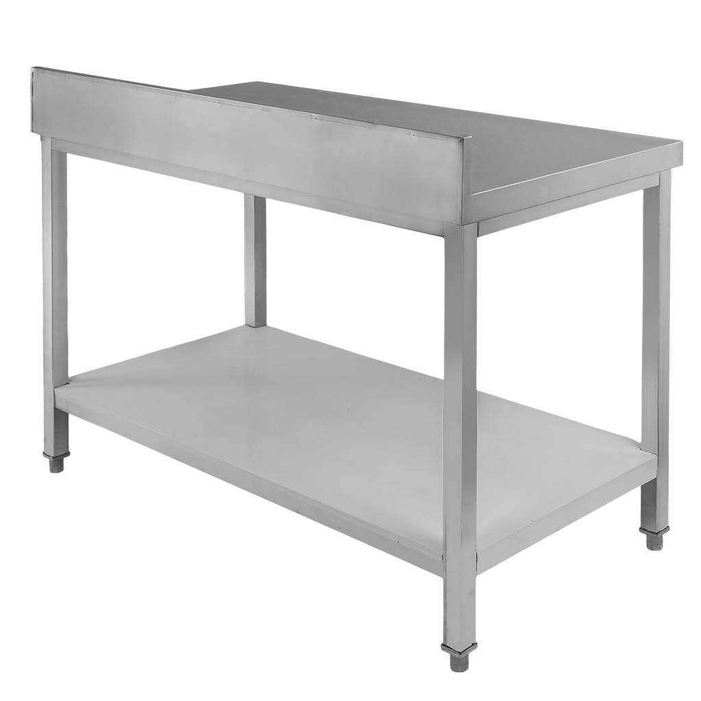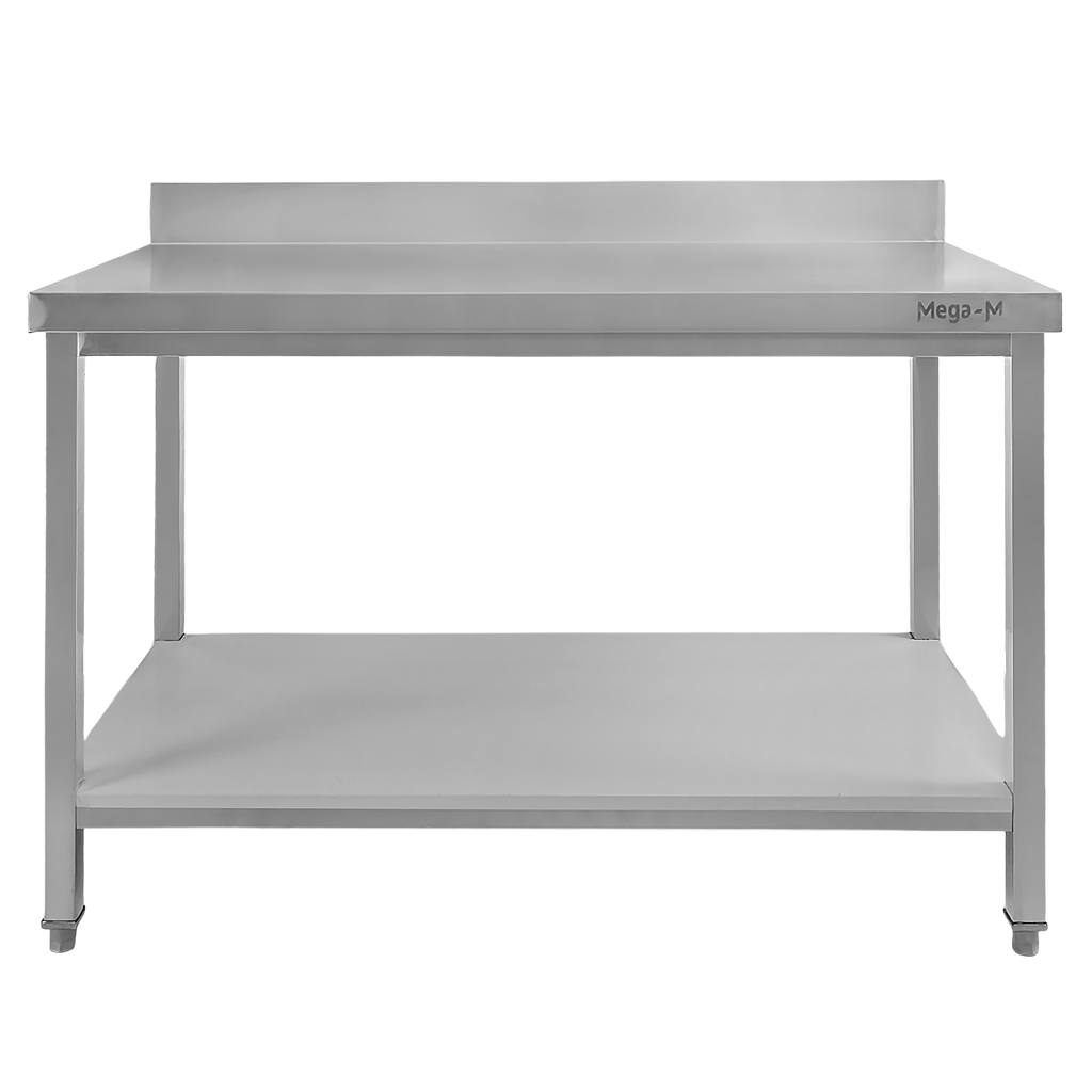 Stół gastronomiczny ze stali nierdzewnej w rozmiarze 120x60x85 cm z rantem i półką Mega-M