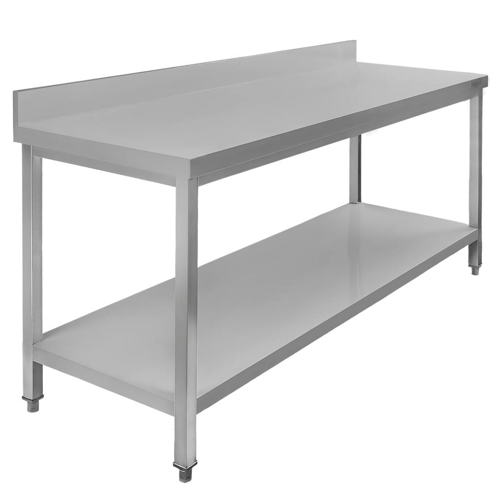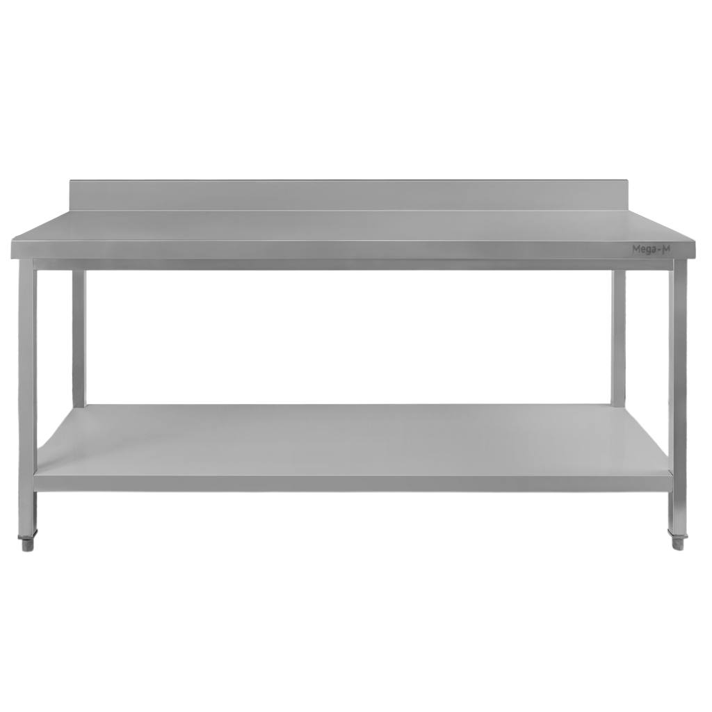 Stół gastronomiczny z półką i rantem marki Mega-M o wymiarach 160x60x85 cm stanowi gwarancję wytrzymałości, funkcjonalności oraz bezpieczeństwa podczas przygotowywania posiłków. Stół przyścienny został wykonany ze stali nierdzewnej, która nie wchodzi w reakcje z żywnością, dzięki czemu jest bezpieczny podczas przygotowywania posiłków. Mebel roboczy posiada dwupoziomową konstrukcję, dzięki której na dolnej półce można odłożyć potrzebne sprzęty gastronomiczne i zawsze je mieć pod ręką. Kolejną zaletą jest rant chroniący ścianę przed zachlapaniem podczas gotowania.