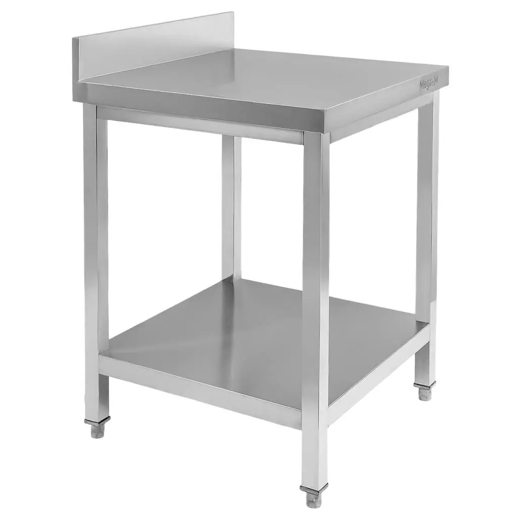 Stół gastronomiczny z półką i rantem marki Mega-M o wymiarach 60x60x85 cm stanowi gwarancję wytrzymałości, funkcjonalności oraz bezpieczeństwa podczas przygotowywania posiłków. Stół przyścienny został wykonany ze stali nierdzewnej, która nie wchodzi w reakcje z żywnością, dzięki czemu jest bezpieczny podczas przygotowywania posiłków. Mebel roboczy posiada dwupoziomową konstrukcję, dzięki której na dolnej półce można odłożyć potrzebne sprzęty gastronomiczne i zawsze je mieć pod ręką. Kolejną zaletą jest rant chroniący ścianę przed zachlapaniem podczas gotowania. Mebel gwarantuje wygodę i komfort podczas pracy.