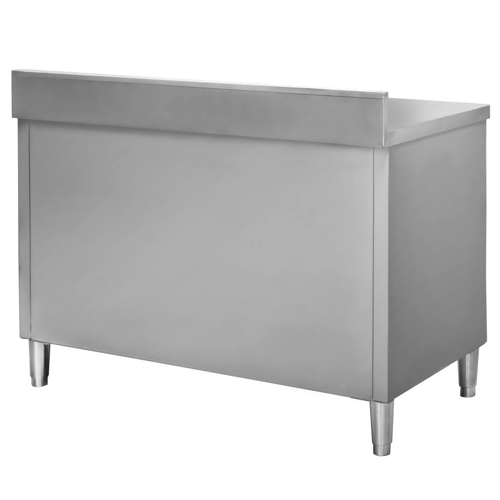 Stół gastronomiczny ze stali nierdzewnej przyścienny z szafką to solidne i funkcjonalne rozwiązanie stworzone z myślą o intensywnej pracy w kuchni. Mebel ten został wykonany z wysokogatunkowej stali nierdzewnej, która zapewnia maksymalną trwałość i odporność na działanie czynników zewnętrznych, w tym wilgoci, wysokich temperatur czy uszkodzeń mechanicznych. Dzięki gładkiej powierzchni stół gastronomiczny jest bezproblemowy w utrzymaniu czystości i nie przywierają do niego resztki pożywienia. Stół ze stali nierdzewnej został wyposażony w przestronną szafkę z pełnymi drzwiami przesuwnymi, wysoki rant i regulowane nóżki.