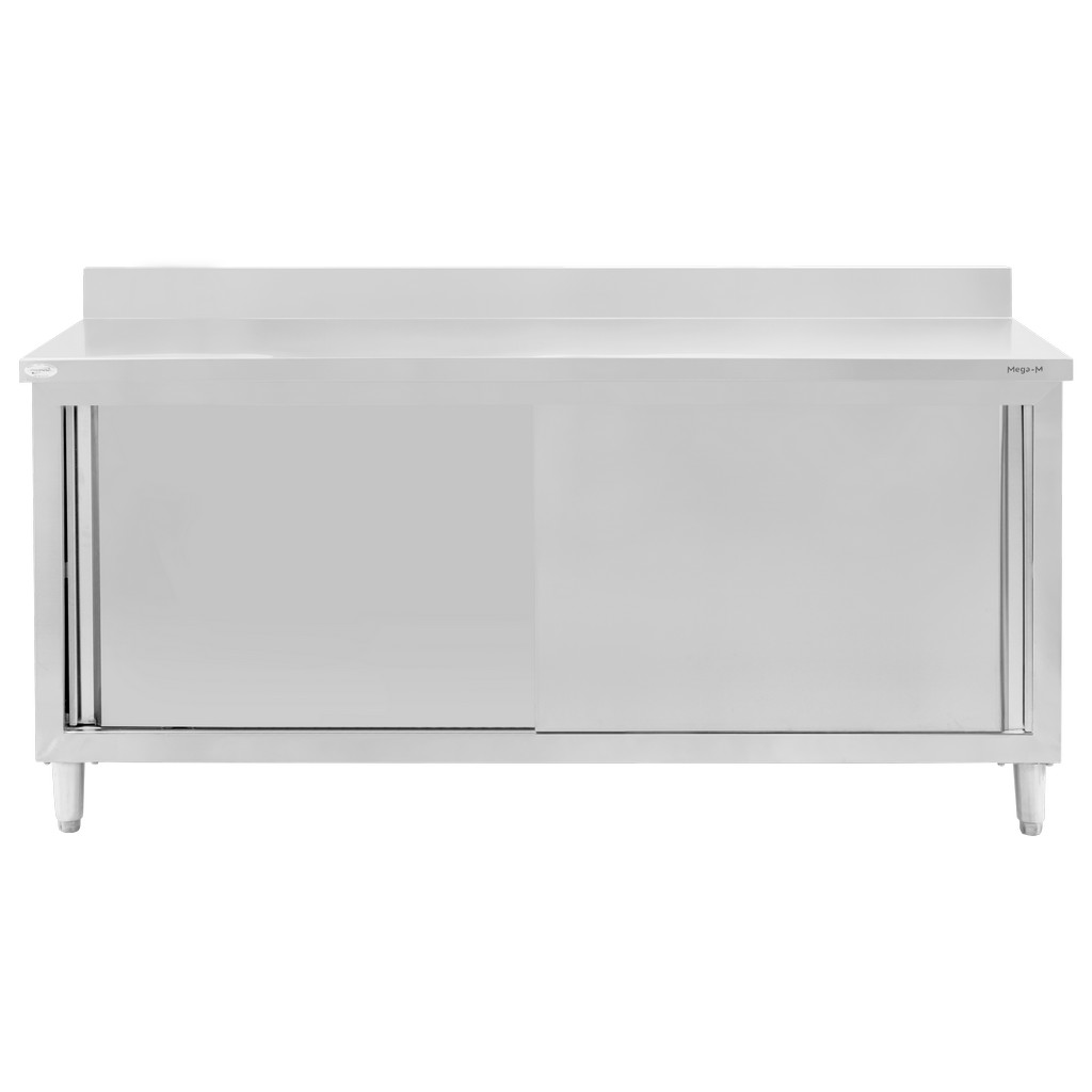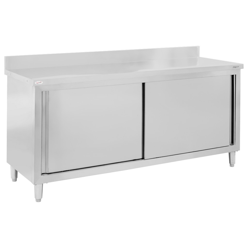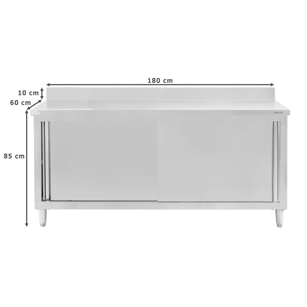Stół gastronomiczny roboczy z szafką i rantem Mega-M 180x60x85 cm – wysokiej jakości stal nierdzewna