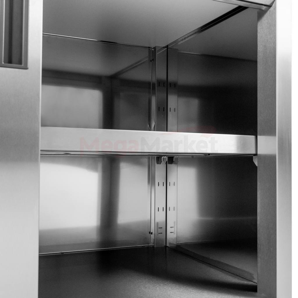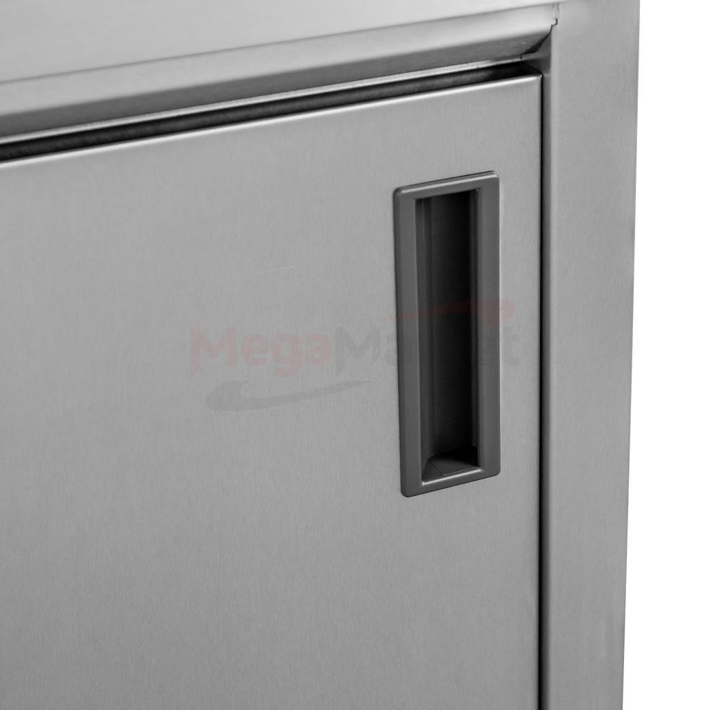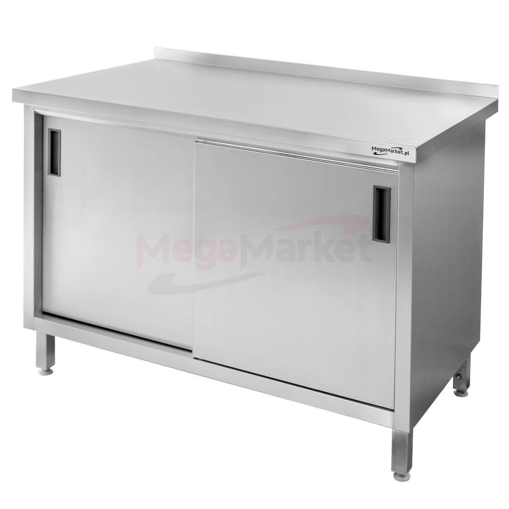 Stół gastronomiczny przyścienny z szafką marki Mega-M stanowi gwarancję wytrzymałości, funkcjonalności oraz bezpieczeństwa. Wykonany jest z wysokiej jakości stali nierdzewnej odpornej na intensywne użytkowanie oraz korozję. Stół spawany posiada szafkę z drzwiami przesuwanymi pozwalającą na umieszczenie naczyń potrzebnych do pracy. Dodatkowym plusem mebla przyściennego jest rant, który zapewnia ochronę przed dostaniem się jakichkolwiek zabrudzeń pomiędzy ścianą a stół.