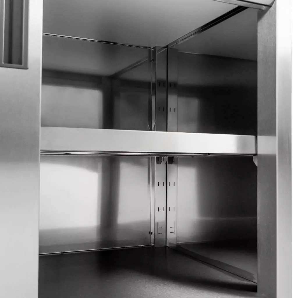 Stół gastronomiczny marki Mega-M stanowi gwarancję wytrzymałości, funkcjonalności oraz bezpieczeństwa. Wyprodukowany w Polsce z wysokogatunkowych materiałów. Objęty 12-miesięczną gwarancją. Stół spawany do gastronomii wykonany jest z wysokiej jakości stali nierdzewnej odpornej na korozję oraz na pracę w intensywnie eksploatowanych kuchniach. Stół roboczy posiada szafkę z drzwiami przesuwanymi pozwalającą na umieszczenie naczyń potrzebnych do pracy. Dodatkowym plusem mebla przyściennego jest rant, który zapewnia ochronę przed dostaniem się jakichkolwiek zabrudzeń pomiędzy ścianą a stół. Gwarantuje komfort i bezpieczeństwo pracy.