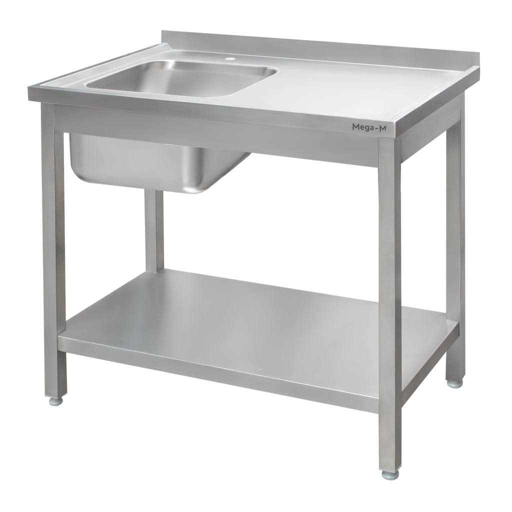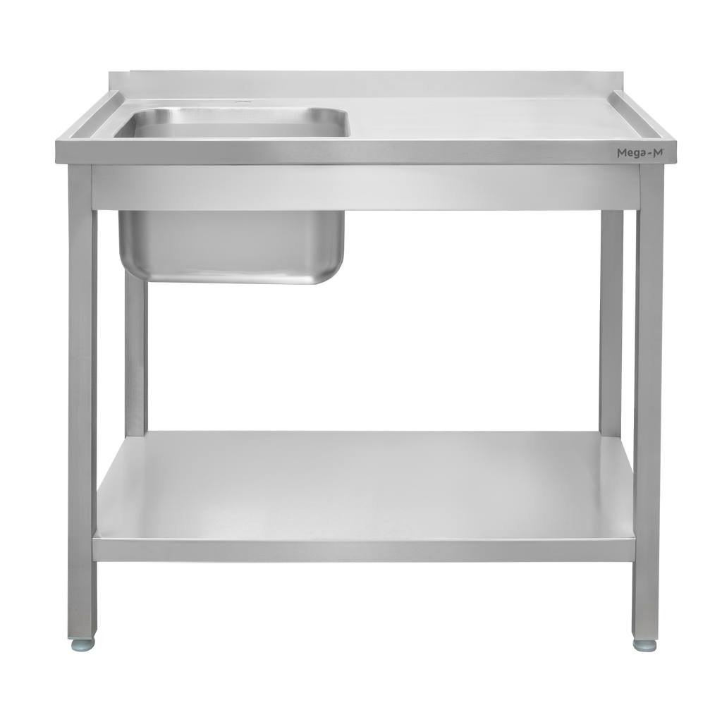 Zlew gastronomiczny ze stali nierdzewnej Mega-M o wymiarach 120x60x85 cm to najwyższej jakości mebel do gastronomii, który spełni oczekiwania najbardziej wymagających użytkowników. Został wykonany ze stali nierdzewnej najwyższej jakości, co czyni go bezpiecznym dla żywności i niezwykle odpornym na intensywne użytkowanie. Pojemna komora zlewu umiejscowiona po lewej stronie umożliwia mycie naczyń kuchennych, które nie mieszczą się w zmywarce. Sprawdzi się zarówno do mycia produktów spożywczych przed obróbką jak i do ich rozmrażania. Zlew gastronomiczny Mega-M został wyposażony w rant przyścienny, który chroni ścianę przed zachlapaniem wodą i innymi zabrudzeniami oraz półkę, na której można przechowywać niezbędne akcesoria kuchenne lub środki czystości. Oprócz tego mebel posiada również blat obok komory zlewu, który sprawdzi się zarówno jako dodatkowa powierzchnia robocza jak i ociekacz na umyte naczynia. Spawana konstrukcja oraz regulowane nóżki gwarantują wybitną stabilność mebla.