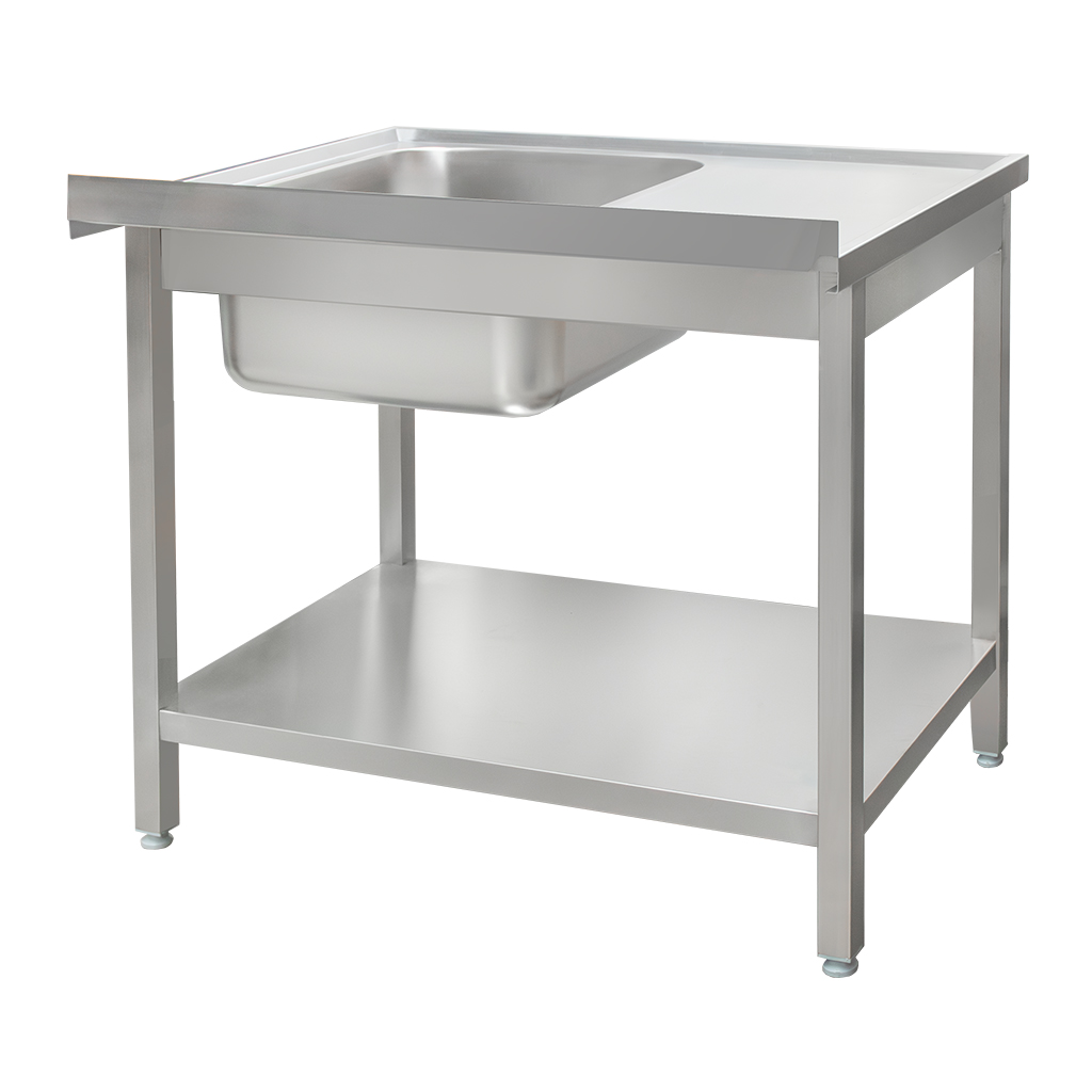 Stół ze stali nierdzewnej przyścienny ze zlewem po prawej stronie i z półką spawany Mega-M S-100 cm G-70 cm H-85 cm N