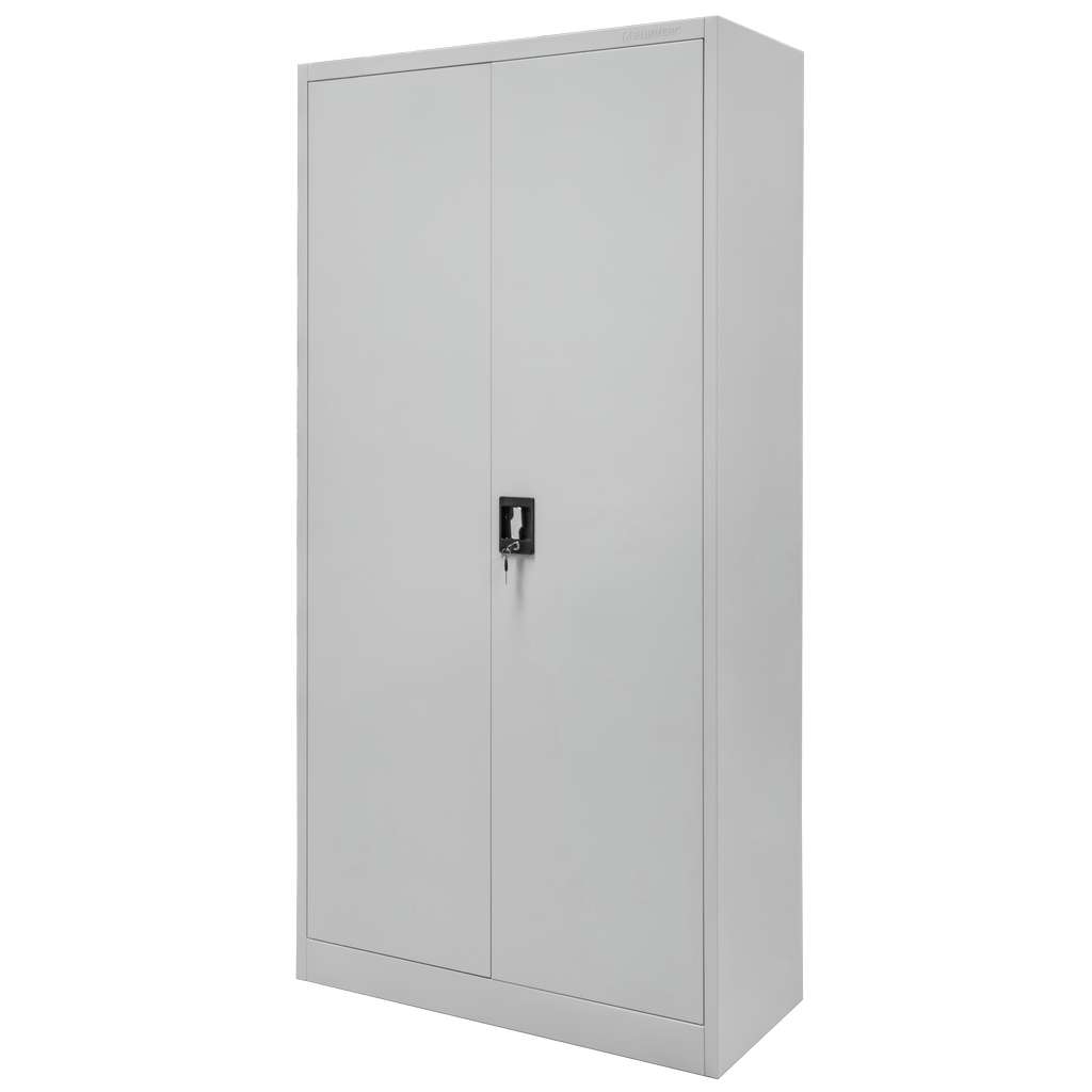 Metalowa szafa biurowa FURVERO W-101 S/S to niezwodne rozwiązanie dla firm i instytucji, które potrzebują wygodnego i bezpiecznego miejsca do przechowywania akt. Wykonana z solidnej blachy stalowej o grubości 0,6 mm i pomalowana proszkowo na elegancki kolor szary, zapewnia trwałość oraz estetyczny wygląd. Model o wymiarach 90x40x185 cm wyposażony jest w pełne drzwi oraz cztery regulowane półki, co umożliwia dopasowanie przestrzeni do różnego rodzaju dokumentów i segregatorów.