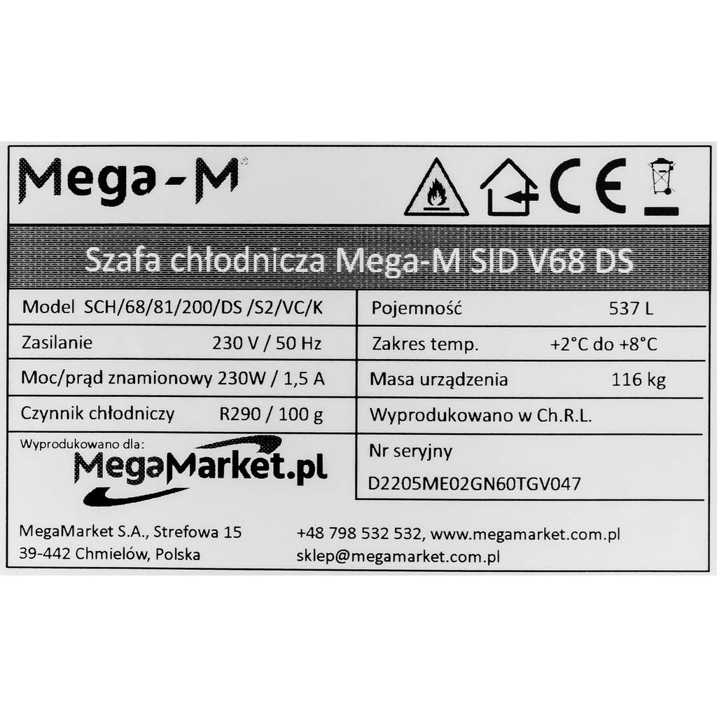 Szafa chłodnicza zapleczowa Mega-M SID V68 DS