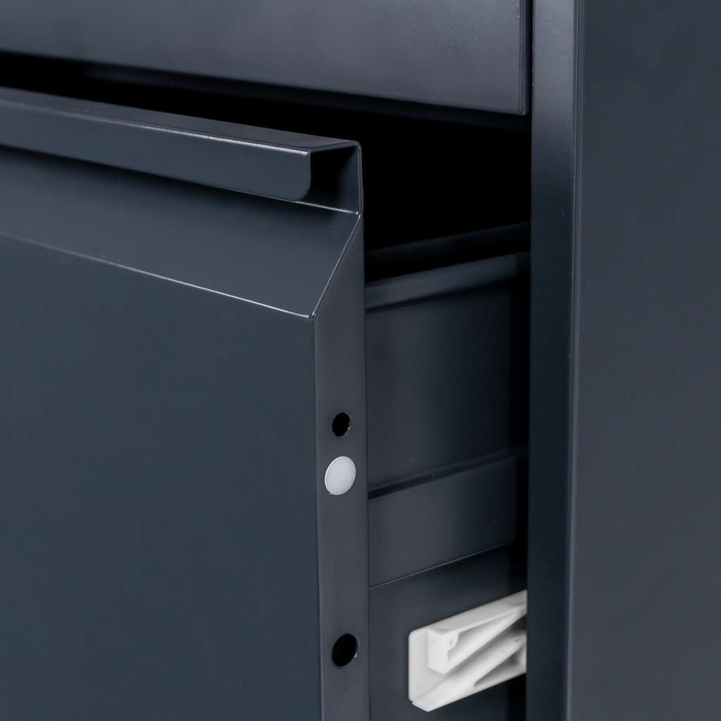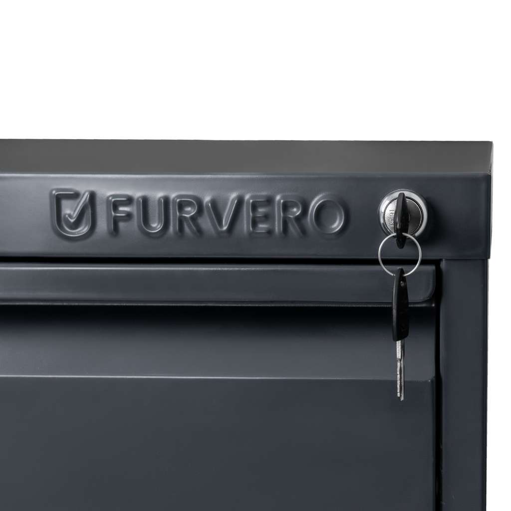 Szafka metalowa na dokumenty FURVERO W4S G/G to idealne rozwiązanie dla osób i firm, które cenią porządek, bezpieczeństwo oraz trwałość wyposażenia biurowego. Model o wymiarach 45x62x134 cm został wykonany z odpornej blachy stalowej malowanej proszkowo na elegancki kolor grafitowy. Powłoka epoksydowa chroni przed korozją, wilgocią oraz skrajnymi temperaturami, gwarantując wieloletnie użytkowanie. Cztery pojemne szuflady z pełnym wysuwem ułatwiają organizację dokumentów, a centralny zamek zabezpiecza całą zawartość jednym kluczykiem.