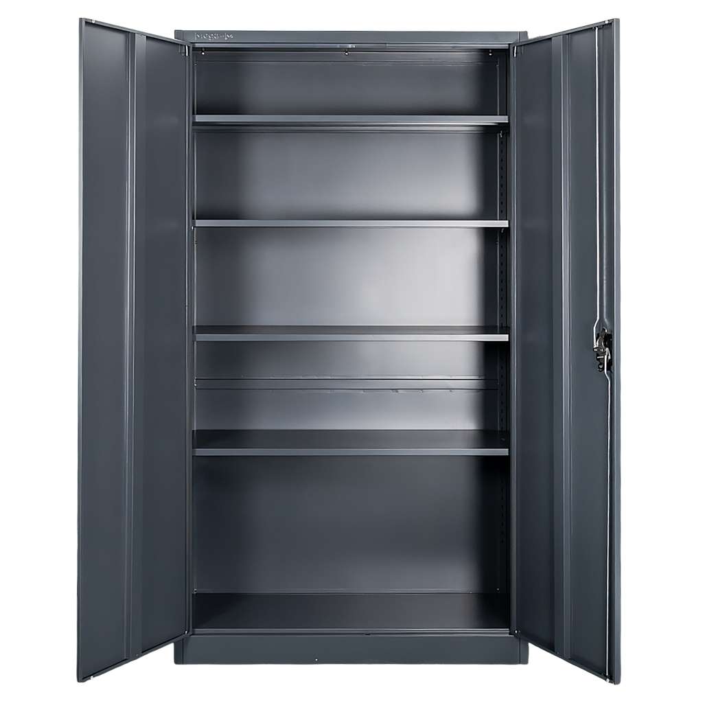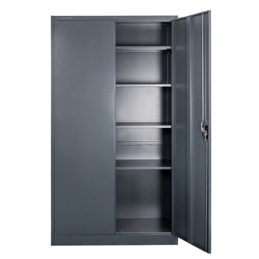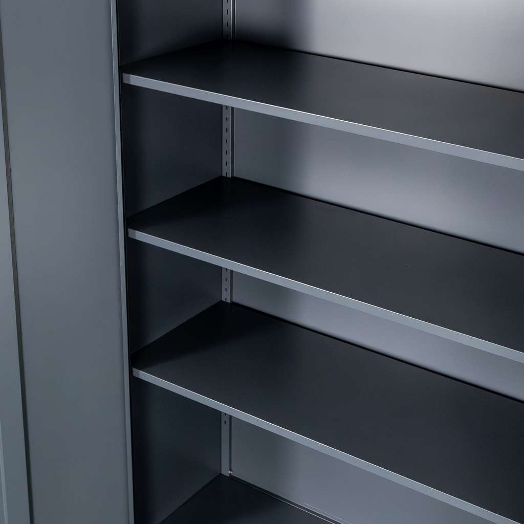 Metalowa szafa biurowa Mega-M w kolorze grafitowym wyróżnia się nowoczesnym designem. Model ten świetnie sprawdzi się do przechowywania dokumentów, akt, narzędzi czy wyposażenia biurowego. Szafa aktowa posiada trzypunktowy zamek, który chroni zawartość przed dostępem osób nieupoważnionych. Funkcjonalna i pojemna szafa wyposażona jest w 4 regulowane półki, których wysokość z łatwością można dostosować do wielkości przechowywanych segregatorów oraz przedmiotów. Solidna i trwała stalowa konstrukcja gwarantuje wieloletni okres użytkowania.