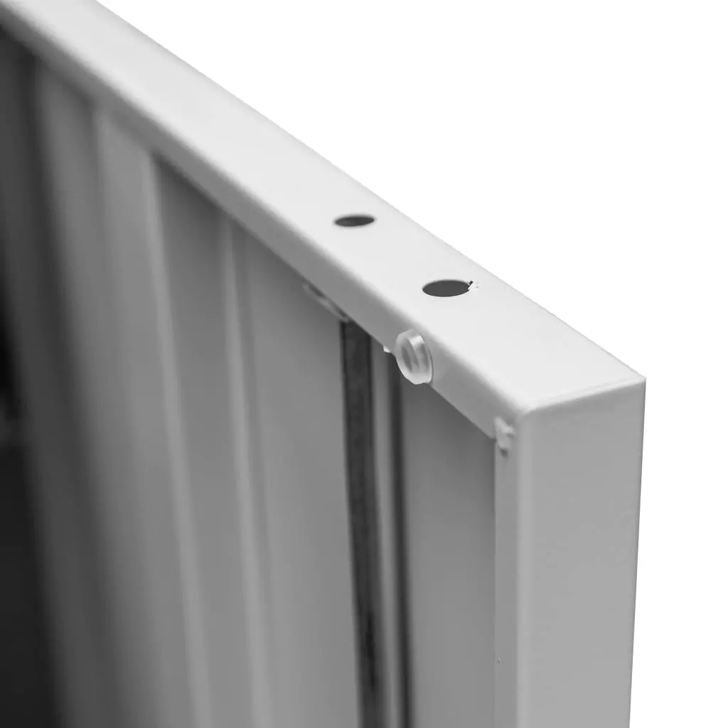 Szafa na akta marki Mega-M zapewnia komfortowy dostęp i bezpieczeństwo przechowywania dokumentacji biurowej. Wykonana jest z blachy stalowej malowanej proszkowo na kolor szary (RAL 7035). Szafka na dokumenty posiada 3 poziomy półek z możliwością zmiany wysokości. Wyposażona jest w ryglowany, trzypunktowy zamek, który ogranicza dostęp do akt osobom nieupoważnionym. Maksymalna nośność półki do 30 kg .