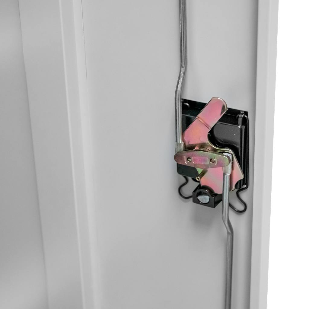 Szafa aktowa marki Mega-M zapewnia komfortowy dostęp i bezpieczeństwo przechowywania dokumentacji biurowej. Wykonana jest z blachy stalowej malowanej proszkowo na kolor szary (RAL 7035). Szafka na dokumenty posiada 4 poziomy półek z możliwością zmiany wysokości. Szafka wyposażona jest w ryglowany, trzypunktowy zamek, który ogranicza dostęp do akt osobom nieupoważnionym. Maksymalna nośność półki do 30 kg .