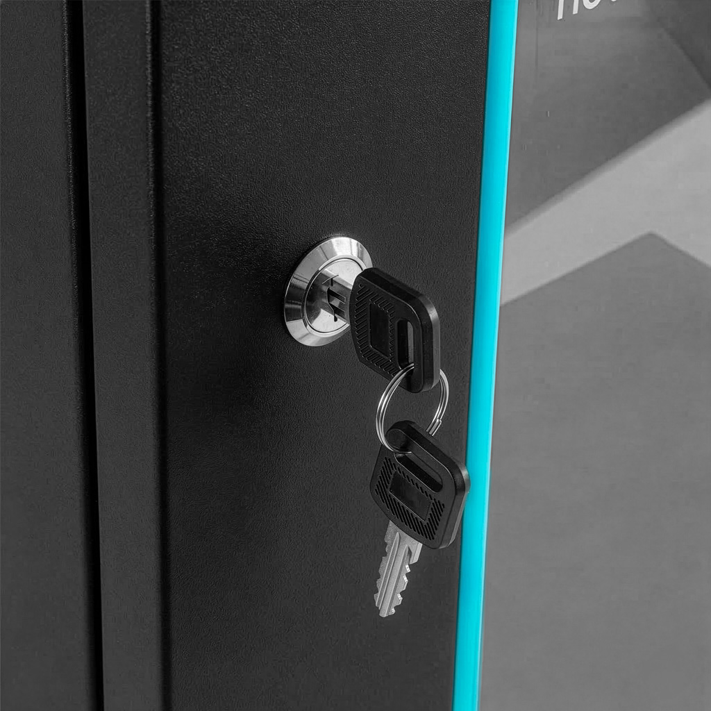 Model BASIC nie posiada tylnej ściany, a boczne panele są nieotwierane. Produkt przeznaczony jest tylko do zastosowania wewnątrz pomieszczeń. Stalowa obudowa malowana proszkowo oraz przeszklone drzwi z hartowaną szybą, zapewniają trwałość i bezpieczeństwo w jednym. Liczne otwory wentylacyjne w szafie rack 9U gwarantują właściwy przepływ powietrza.