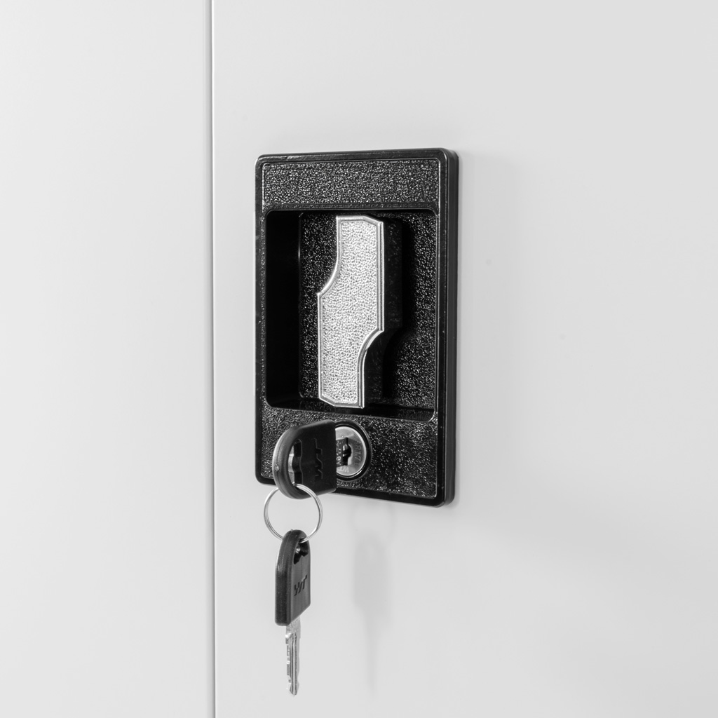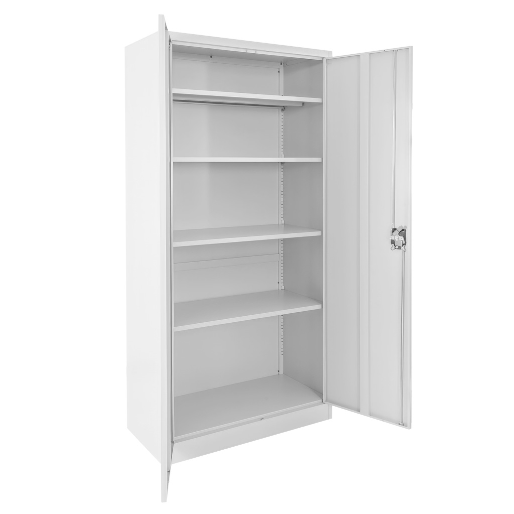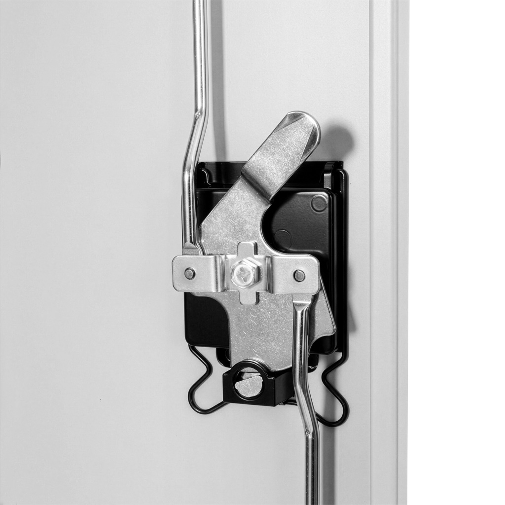 Wymiary 90x40x185 cm zapewniają dużą pojemność przy zachowaniu rozsądnej głębokości, dzięki czemu szafa nie zajmuje niepotrzebnie miejsca w ciągach komunikacyjnych. Pełne drzwi chronią zawartość prze kurzem i zabrudzeniami typowymi dla środowiska warsztatowego, a cztery regulowane półki pozwalają dopasować wnętrze do skrzynek narzędziowych, pojemników, części zamiennych czy chemii technicznej. Dodatkowo trzypunktowy zamek ryglowany zabezpiecza sprzęt przed niepowołanym dostępem, a regulowane nóżki ułatwiają stabilne ustawienie nawet na nierównej posadzce.