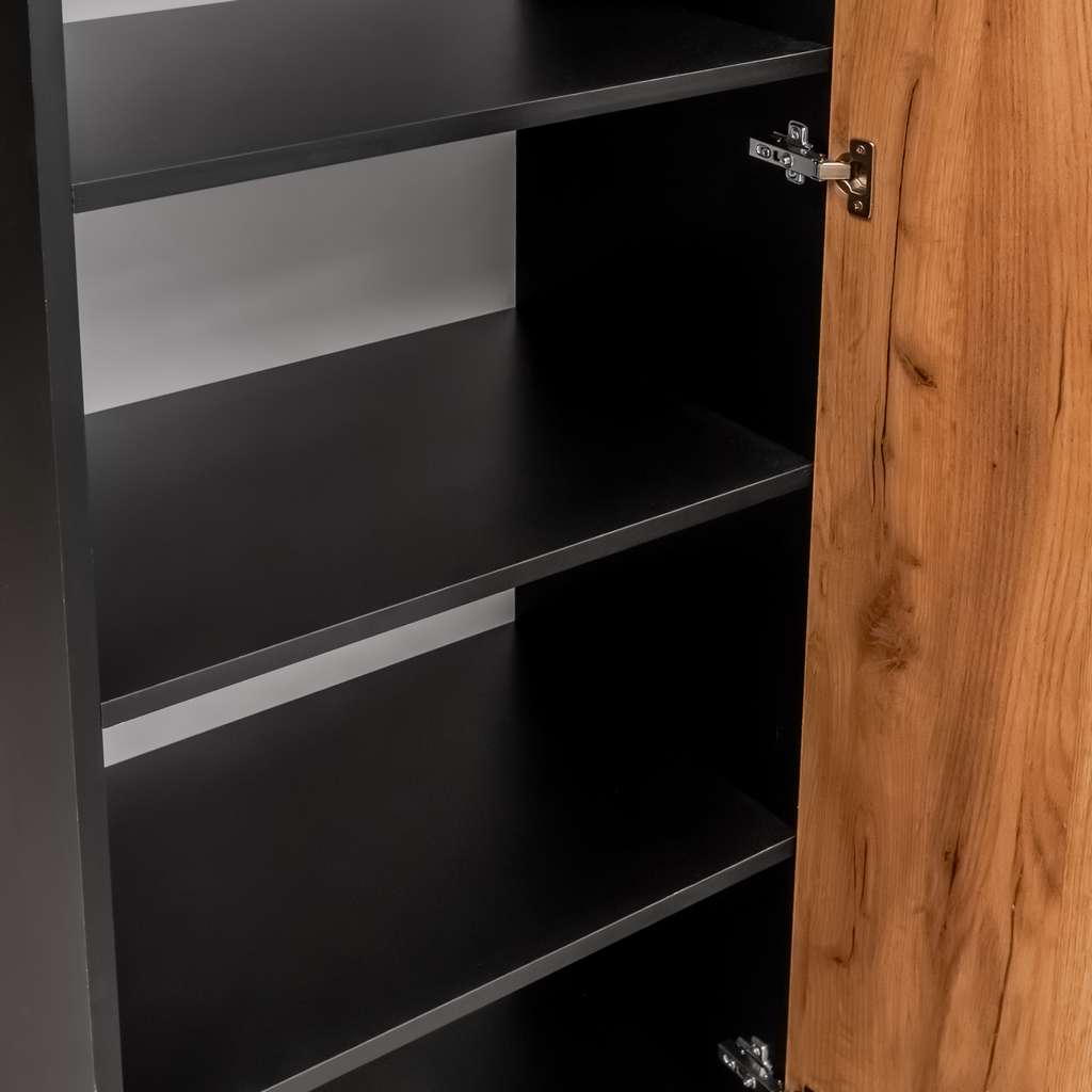 Szafka biurowa na segregatory Mega-M H- 200 cm L- 60 cm G- 40 cm czarny / front dąb kraft K003 N