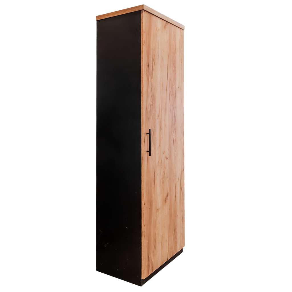 Szafa biurowa Mega-M to praktyczne rozwiązanie dla firm i osób, które cenią porządek oraz estetykę w miejscu pracy. Wyposażona w pięć pojemnych półek, doskonale sprawdzi się do przechowywania segregatorów, teczek i materiałów biurowych, zapewniając łatwy dostęp do dokumentacji i akcesoriów. Wykonana z solidnej płyty meblowej w eleganckiej kolorystyce – czarny korpus i fronty w kolorze dąb kraft – nadaje wnętrzu nowoczesny charakter. Smukła forma szafy typu słupek sprawia, że idealnie pasuje także do mniejszych biur, gabinetów i domowych przestrzeni.