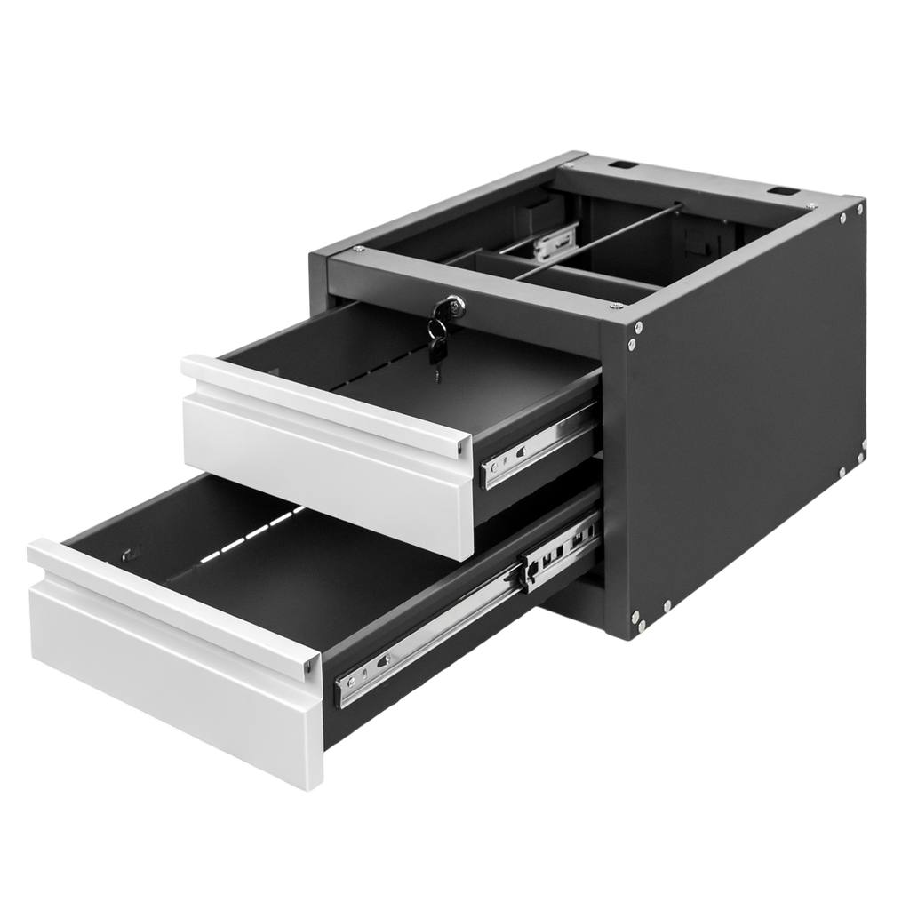 Szafka narzędziowa Mega-M do stołów warsztatowych 2 szuflady S-37 cm x G-48,6 cm x H-34 cm system 01 grafit/front szary N