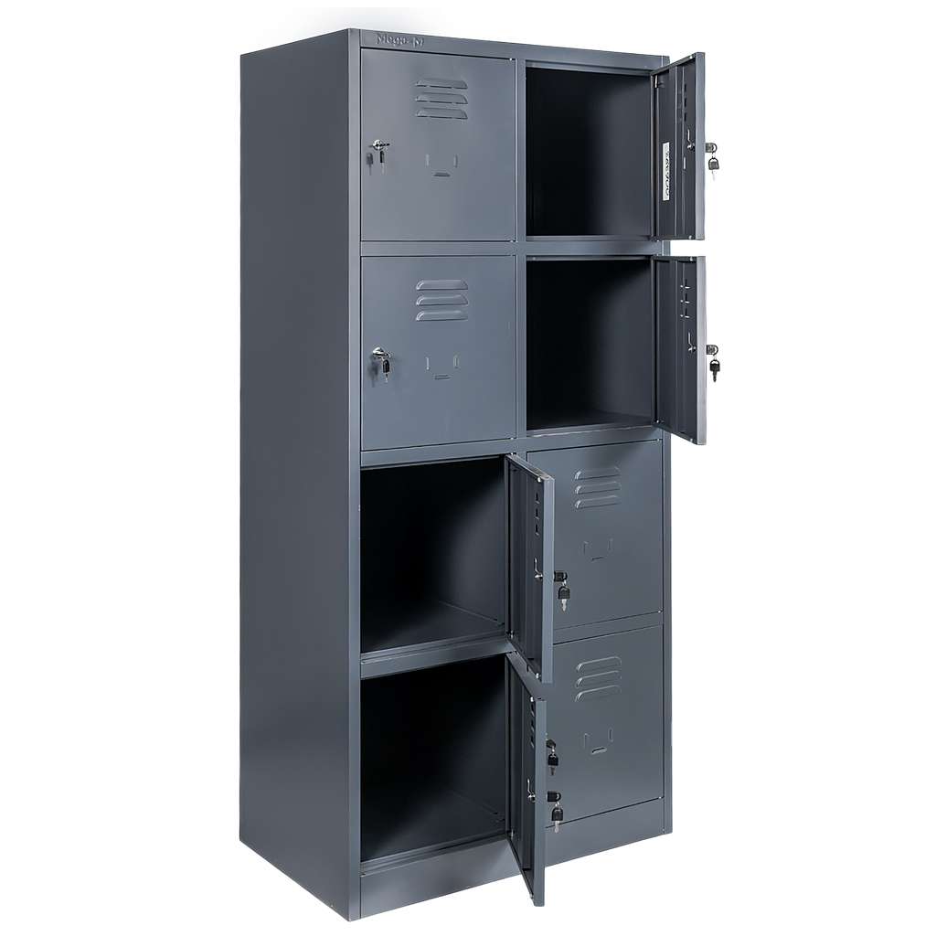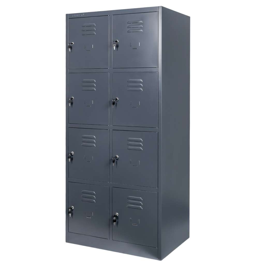 Szafka skrytkowa BHP Mega-M J-80/8 8 drzwiowa grafitowa S-80 cm G-50 cm H-180 cm skręcana N