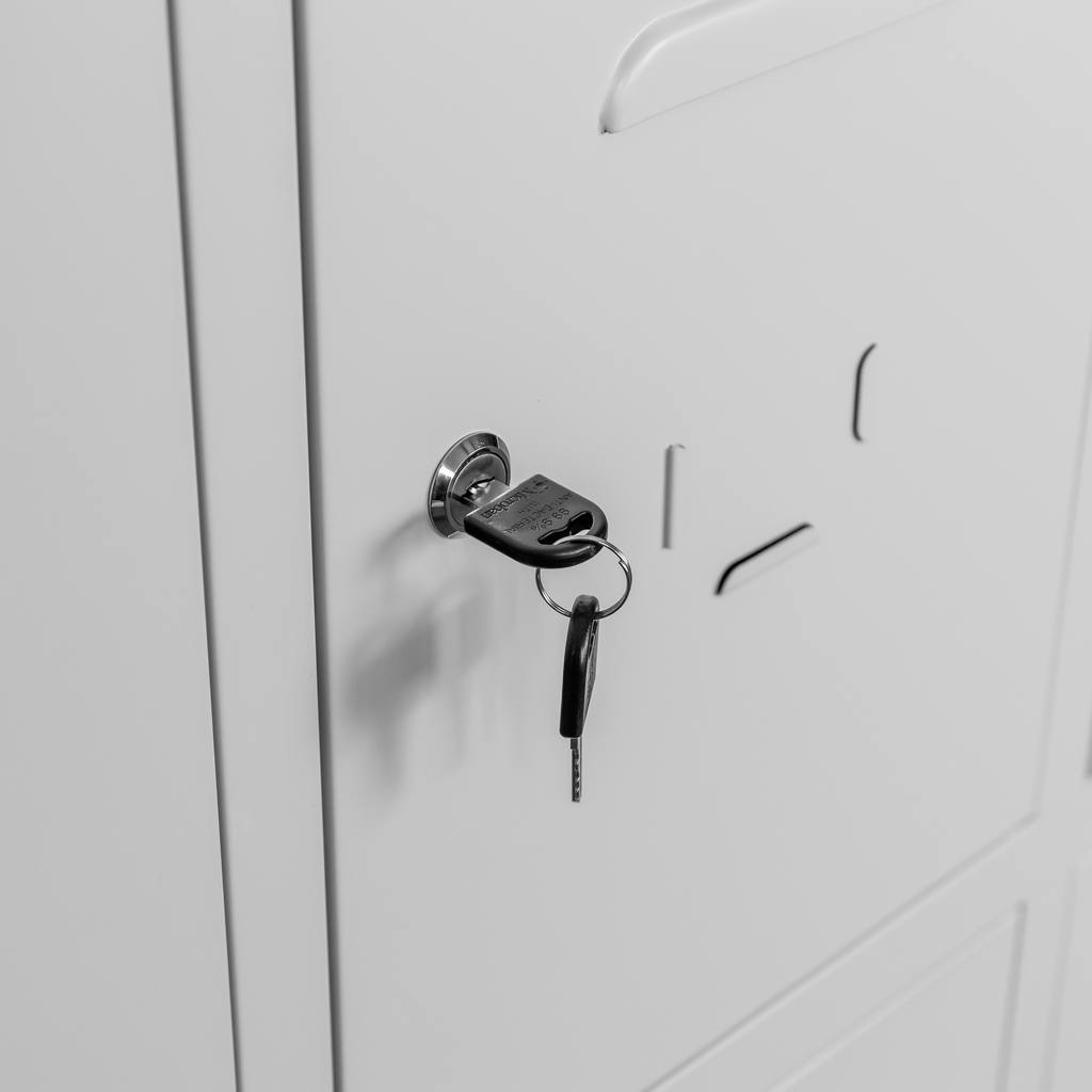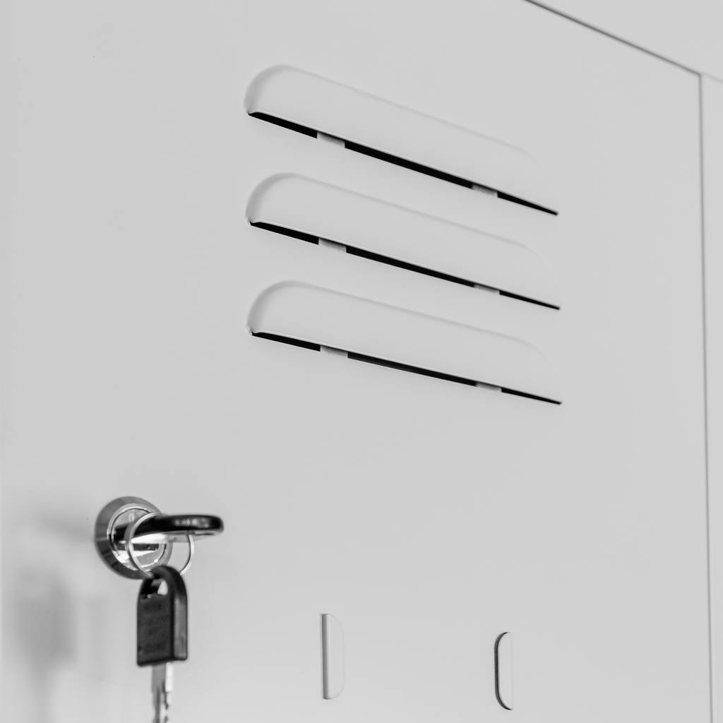 Szafka skrytkowa BHP Mega-M pojemna i funkcjonalna przeznaczona do przechowywania ubrań oraz rzeczy osobistych zarówno pracowników jak i klientów siłowni oraz klubów sportowych. Stabilna i trwała konstrukcja wykonana ze stali malowanej proszkowo jest odporna na korozje. 12 głębokich skrytek zamykanych na klucz z powodzeniem zapewni odpowiednią przestrzeń do przechowywania. Na drzwiach każdej skrytki znajduje się praktyczny wizytownik oraz otwory wentylacyjne, które ułatwiają cyrkulację powietrza.