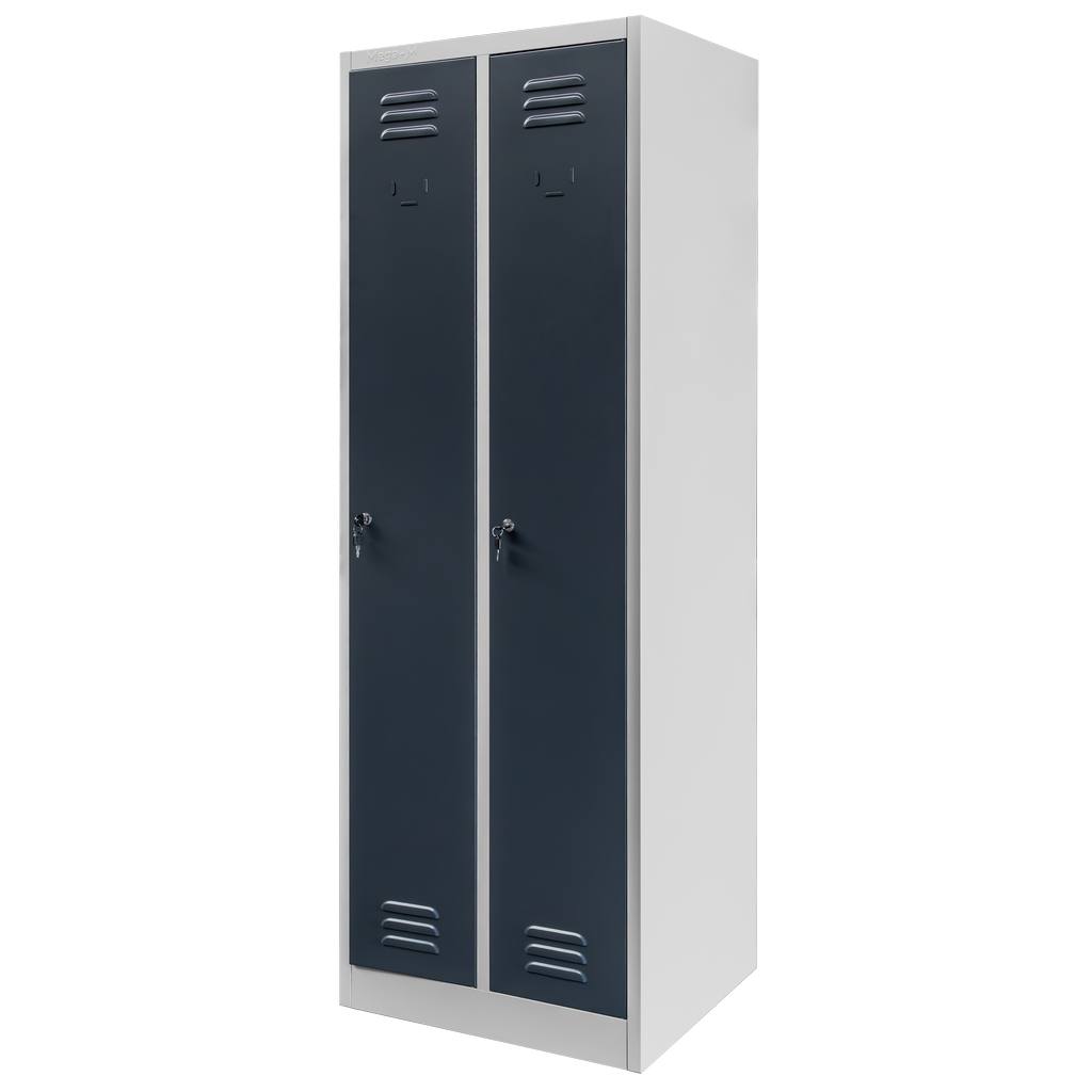 Szafka ubraniowa BHP Mega-M J-60 2 drzwiowa szara/ grafitowy front S-60 cm G-50 cm H-180 cm skręcana N