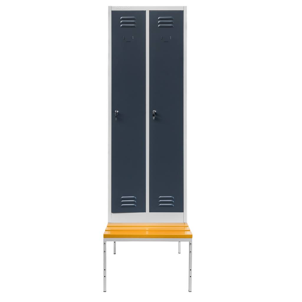 Szafka ubraniowa BHP Mega-M J-60 na podstawie z ławeczką 2 drzwiowa szara/ grafitowy front S-60 cm G-80 cm H-223 cm skręcana N
