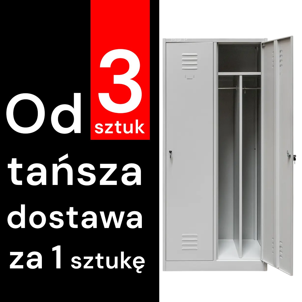 Szafka ubraniowa BHP Mega-M J-80 2 drzwiowa z przegrodami szara S-80 cm G-50 cm H-180 cm skręcana (wysyłka paletowa) N