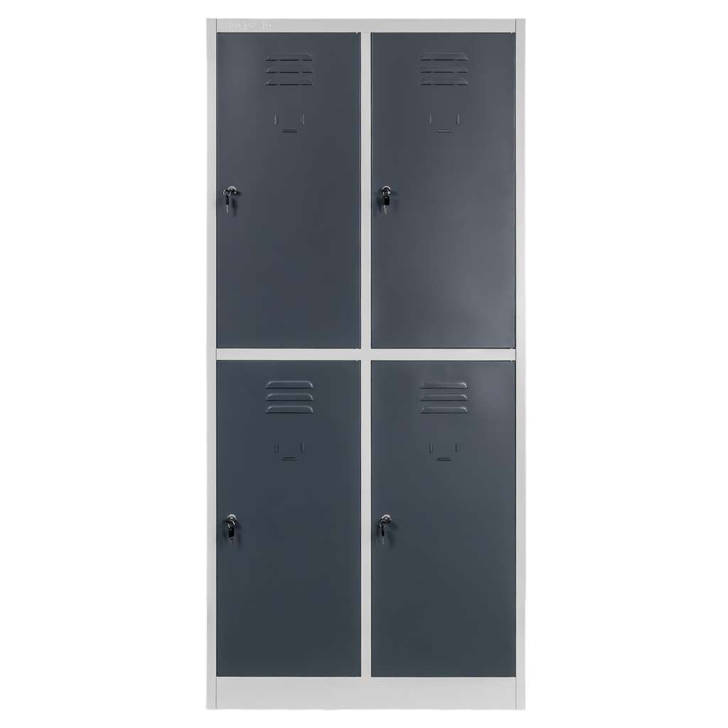 Szafka ubraniowa skrytkowa BHP Mega-M J-80/4 4 drzwiowa szara/ grafitowy front S-80 cm G-50 cm H-180 cm skręcana N