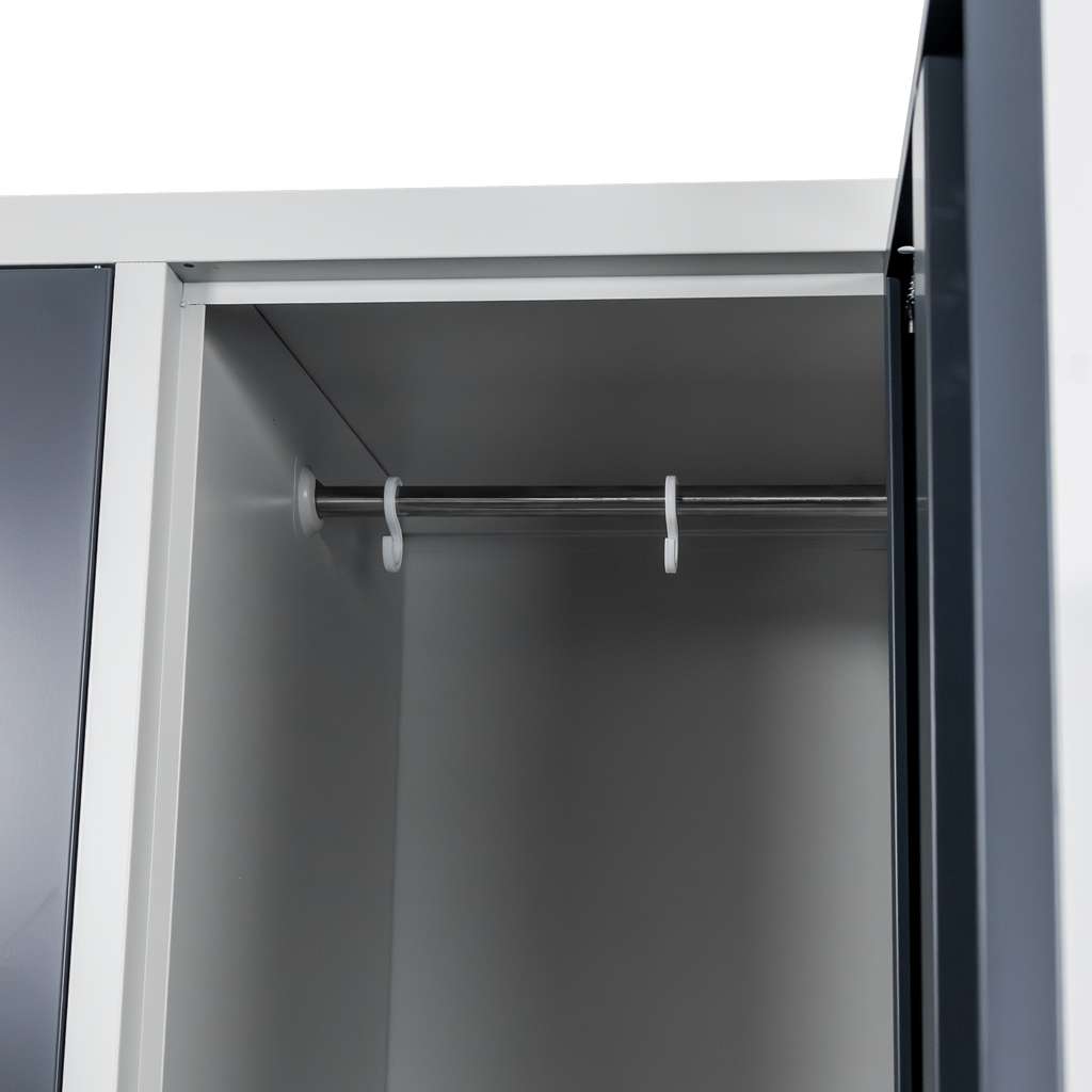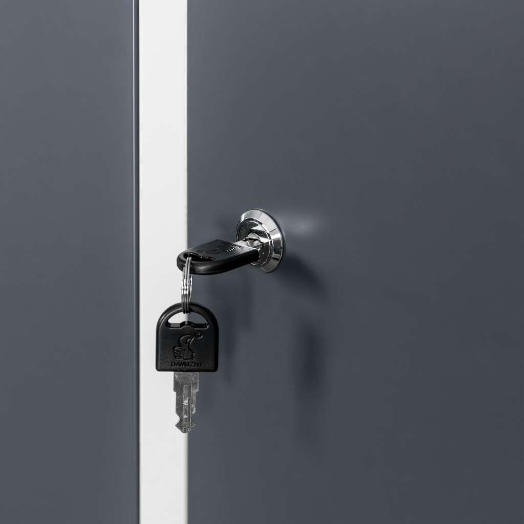 Szafka skrytkowa BHP to praktyczne i estetyczne rozwiązanie do przechowywania odzieży, rzeczy osobistych lub pracowniczych. Wykonana z blachy stalowej zabezpieczona trwałą powłoką proszkową, zapewnia wieloletnią wytrzymałość i odporność na codzienne użytkowanie. Szafka ubraniowa posiada 4 skrytki zamykane na klucz, dzięki nowoczesnemu wykończenie w kolorze szarym z grafitowym frontem doskonale wpisuje się w standardy współczesnych pomieszczeń socjalnych i zapleczy pracowniczych.